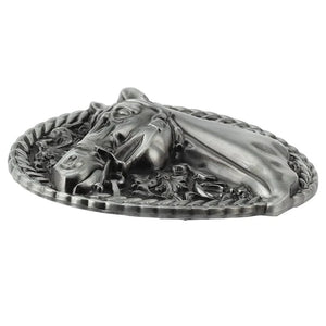 Låt ditt bälte tala för sig själv med detta iögonfallande bältesspänne i westernstil. Den kraftfulla designen med ett detaljerat hästhuvud gör det till en perfekt accessoar för dig som vill bära med dig känslan av frihet, styrka och äkta cowboy-anda.