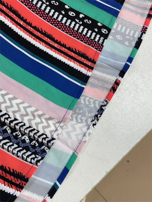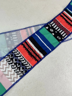 - Färger: Flerfärgad med ränder i rött, grönt, blått, svart och vitt