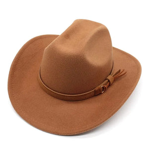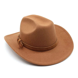 Låt din look tala för sig själv med vår eleganta filt cowboyhatt – en klassisk accessoar som kombinerar robust charm med modern finess. Perfekt för dig som älskar känslan av frihet, oavsett om du är på landet, i staden eller på festival.