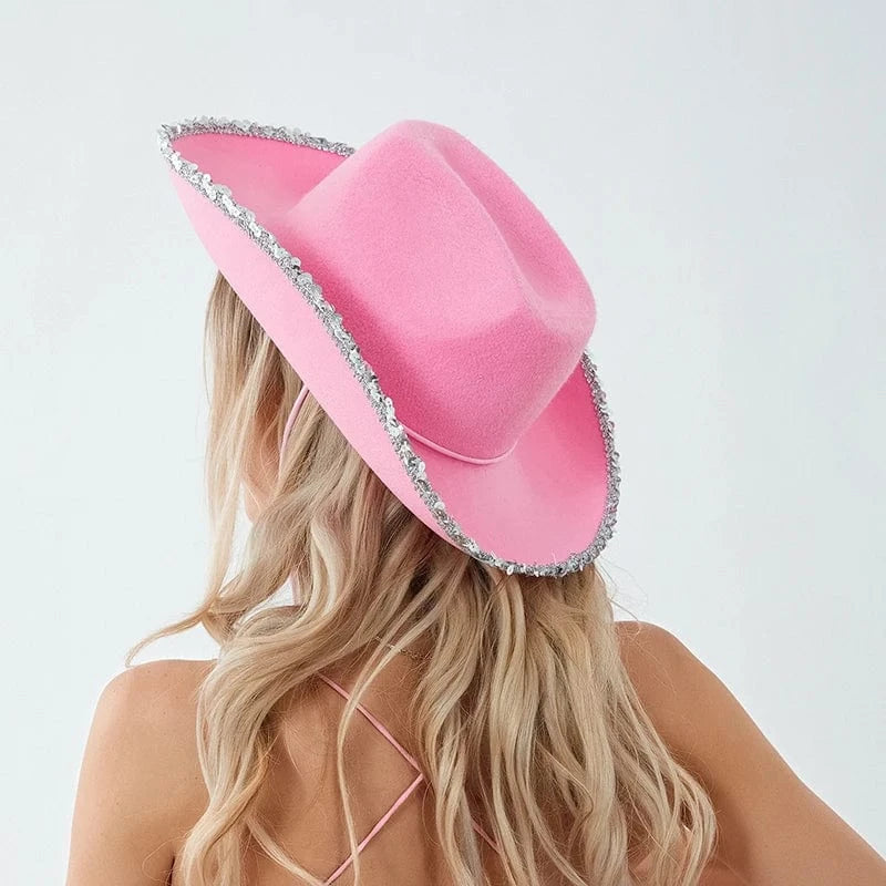 Låt din inre cowgirl glänsa! Vår filt cowboyhatt med glitterkant är den perfekta kombinationen av klassisk western-stil och modern glamour. Oavsett om du dansar under neonljusen på en festival, rider ut på äventyr eller bara vill sätta pricken över i:et på din outfit – den här hatten får dig att sticka ut.