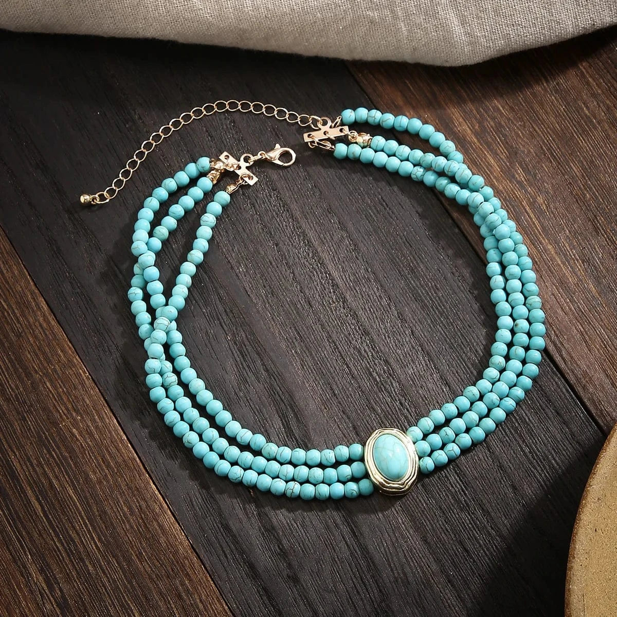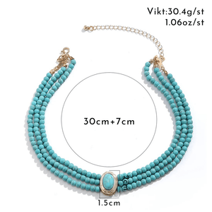 Flerradigt choker-halsband med turkosa pärlor
