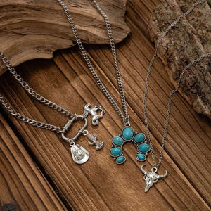 Flerradigt halsbandsset i western stil med turkos och cowboy-berlocker – djärv elegans för din look