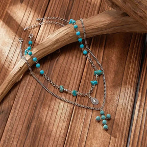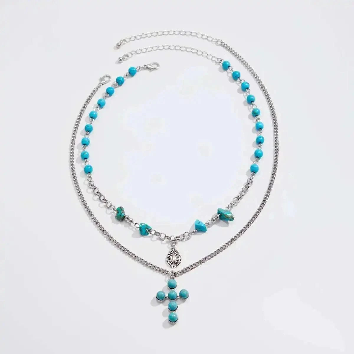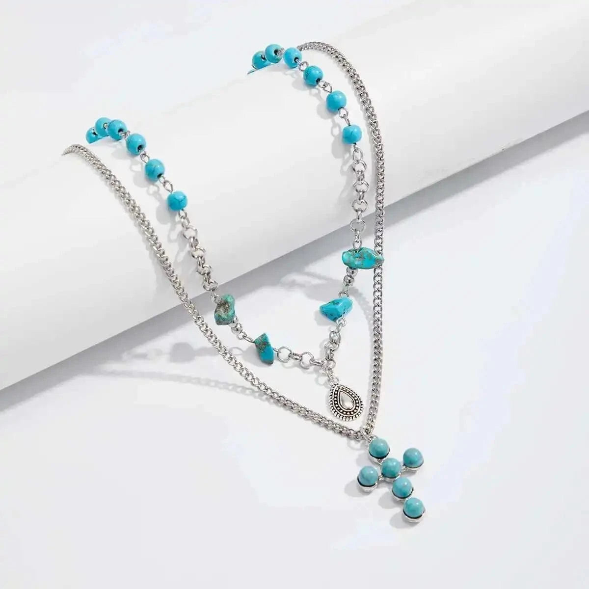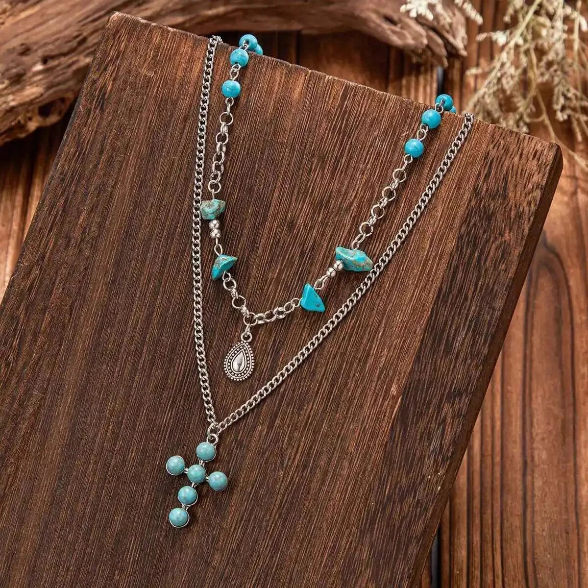 Flerradigt halsbandsset i western stil med turkoskors och choker – en bohemisk hyllning till friheten