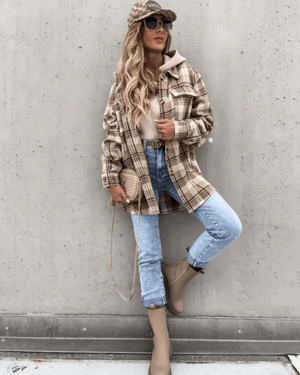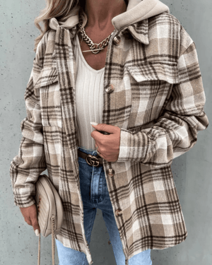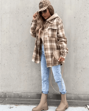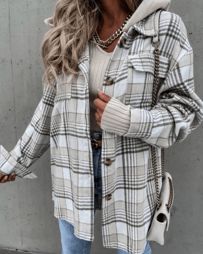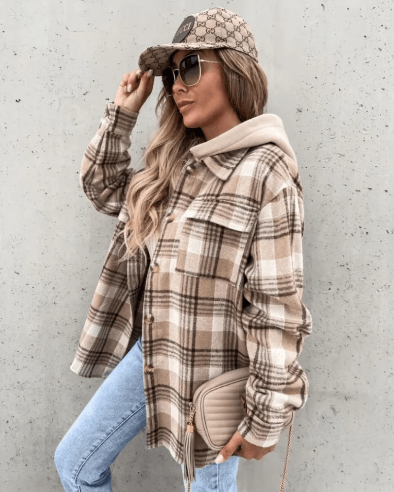 Kliv in i säsongen med en skjorta som kombinerar mjuk värme, trendig design och vardaglig funktion. Den fodrade rutiga hoodie-skjortan för dam är skapad för att ge dig en stilfull känsla – oavsett om du är ute på stan eller myser på helgen.