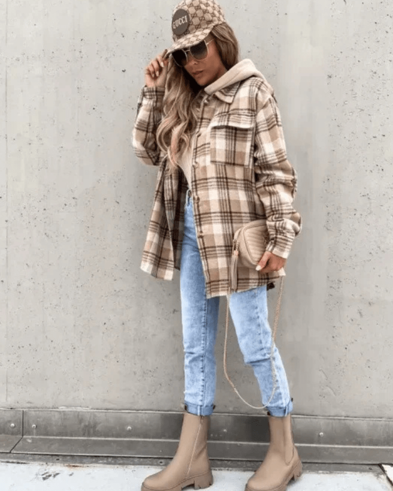 Fodrad rutig hoodie-skjorta dam – där värme möter streetstil