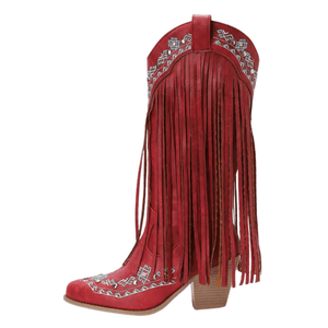 Lyft varje outfit till en ny nivå med dessa ikoniska fransboots – perfekta för dig som älskar cowgirl-energi och vill känna dig både självsäker och unik. De långa fransarna sveper vackert vid varje steg, och det detaljerade broderiet ger en exklusiv touch som fångar allas blickar. Oavsett om du tar dansgolvet med storm eller njuter av en dag i stan, kommer dessa boots snabbt bli dina favoriter.