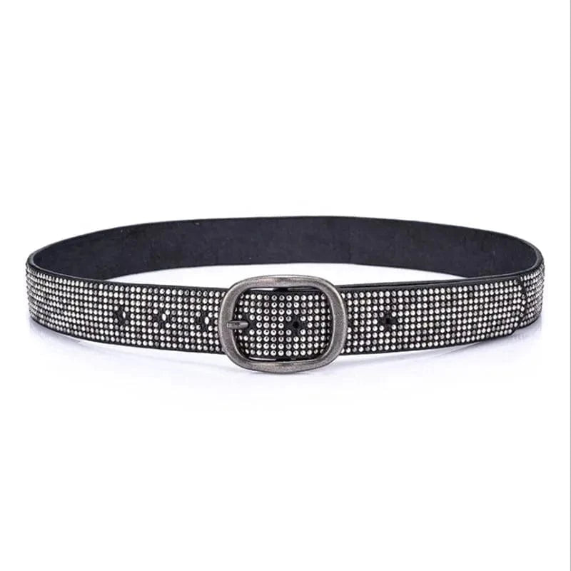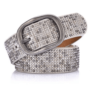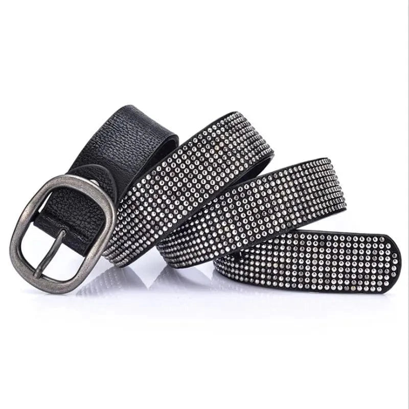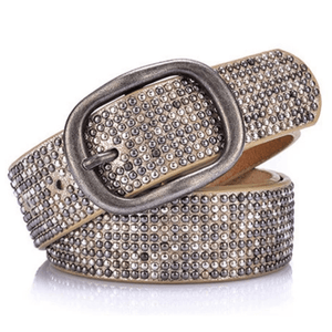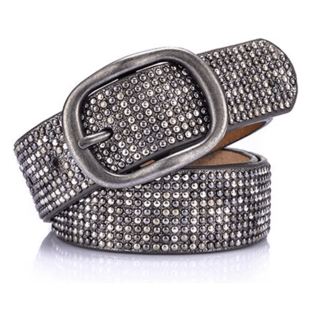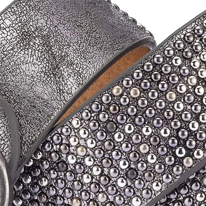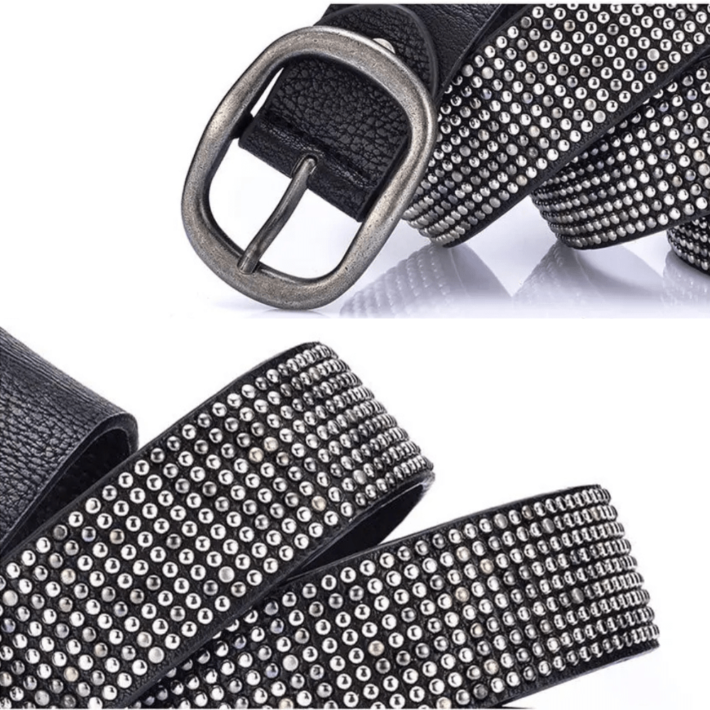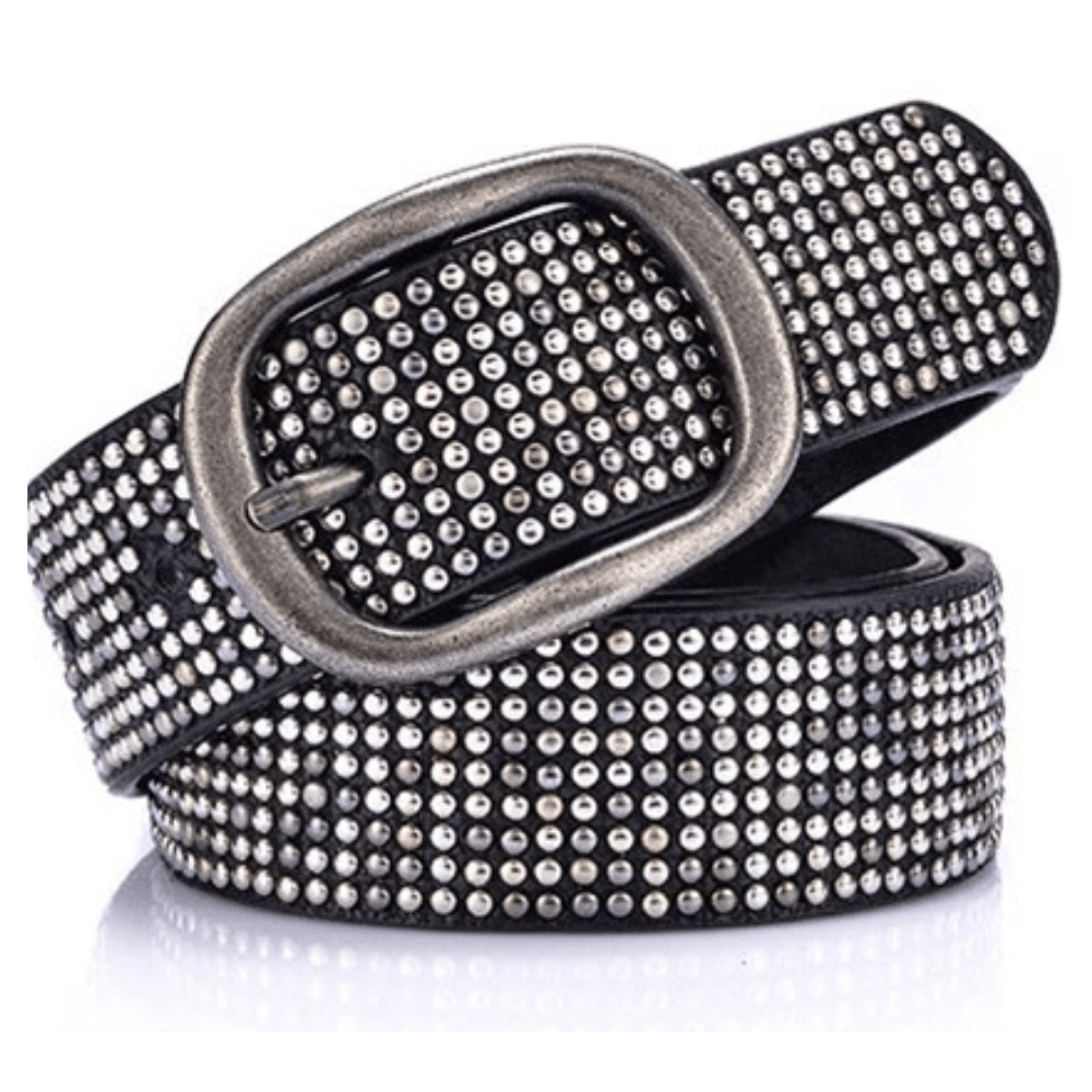 Letar du efter ett bälte som lyfter varje outfit? Det här nitsmyckade cowboybältet är mer än ett tillbehör – det är en stilmarkör. Med sin skimrande finish och vintageinspirerade metallspänne får du både punkattityd och lyxkänsla i ett.