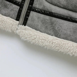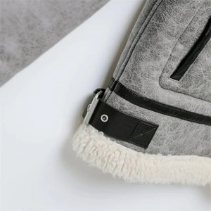 Låt dig omfamnas av värmen och stilen från vår grå shearlingjacka för herr. En robust och tidlös jacka som kombinerar komfort, kvalitet och en modern cowboy-inspirerad look. Perfekt för kalla höst- och vinterdagar, oavsett om du är ute på äventyr eller på väg till stan.