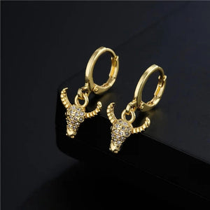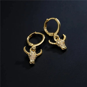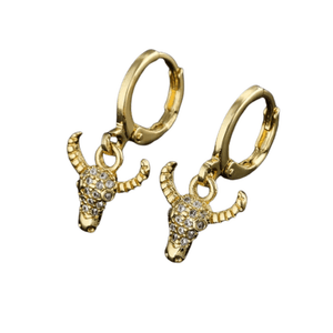 Guld hoops med glittrig tjurskalle: västern möter gnistrande glamour