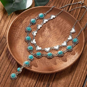 Halsbandsset i western stil med turkos och hjärtan