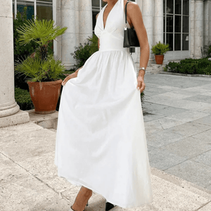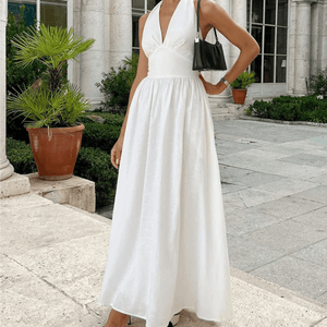Föreställ dig en varm sommardag, solen skiner och du sveper på dig en elegant, luftig klänning som både är bekväm och får dig att känna dig fantastisk. Denna halterneck klänning är skapad för att ge dig en känsla av frihet och tidlös stil.