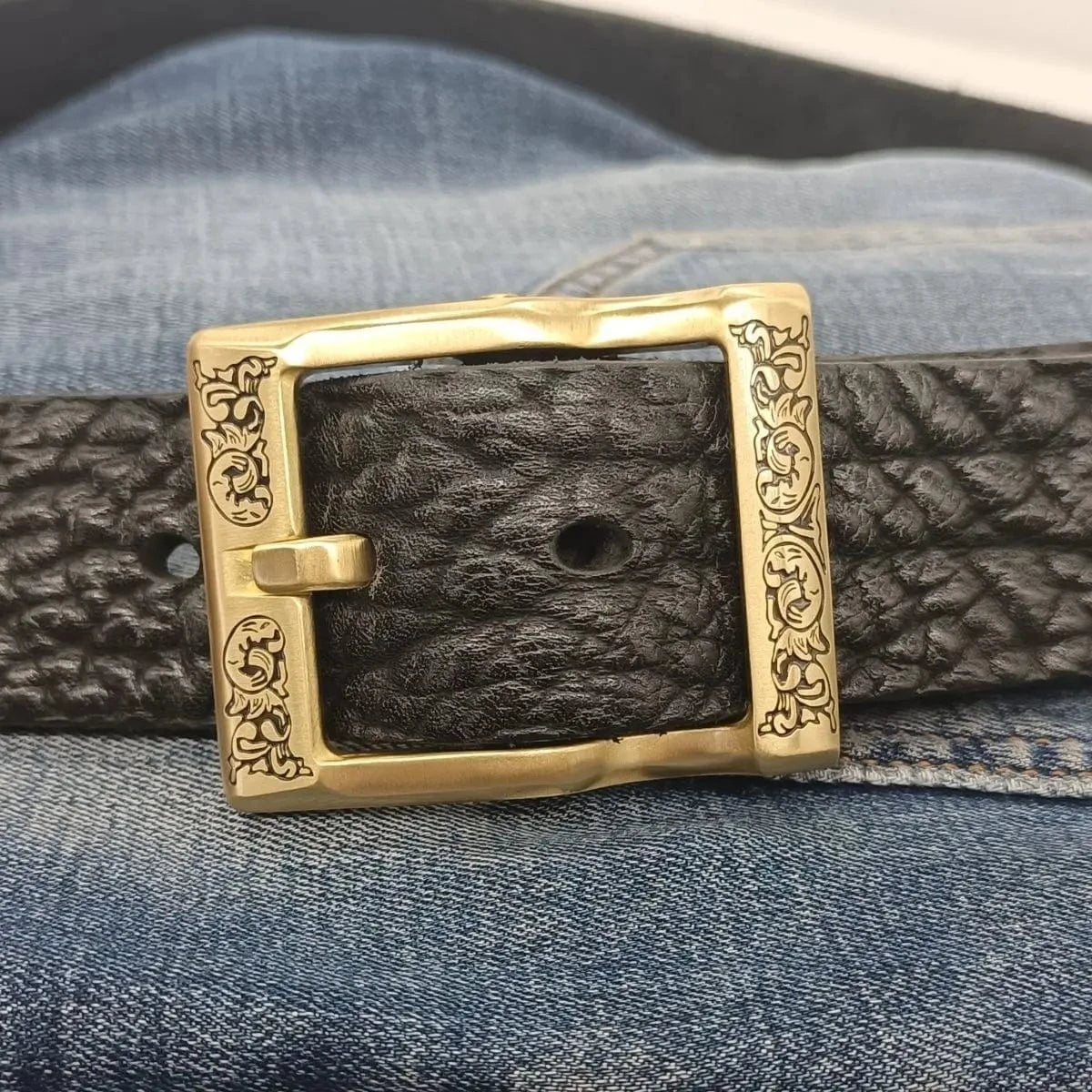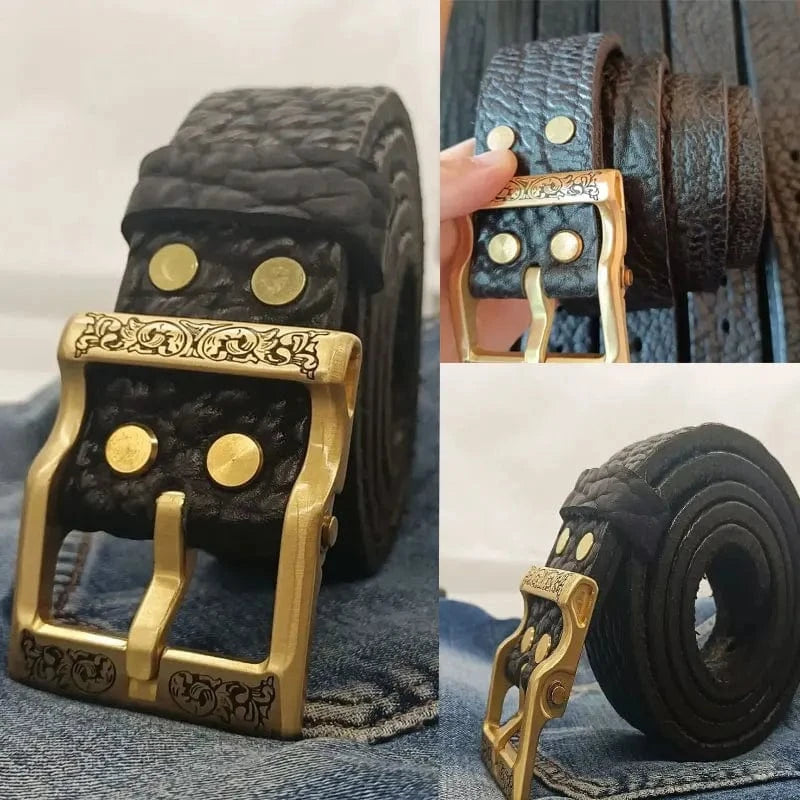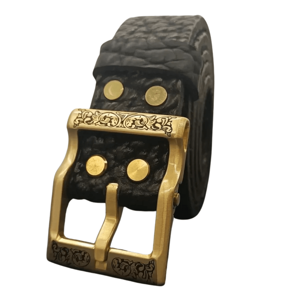 Det här är bältet för dig som söker mer än bara funktion – du vill ha något som känns gediget. Med handgjort mönster, slitstarkt koläder och ett dekorerat spänne i borstad mässing är detta westernbälte ett tidlöst tillskott i din garderob. Perfekt till jeans, boots och vardagsstil med själ.
