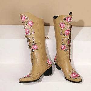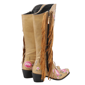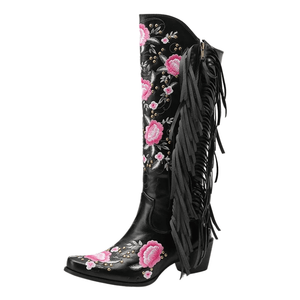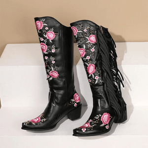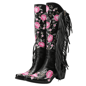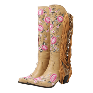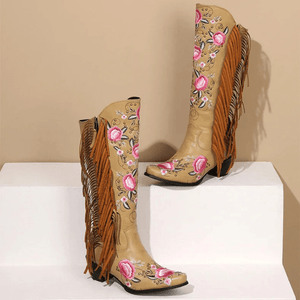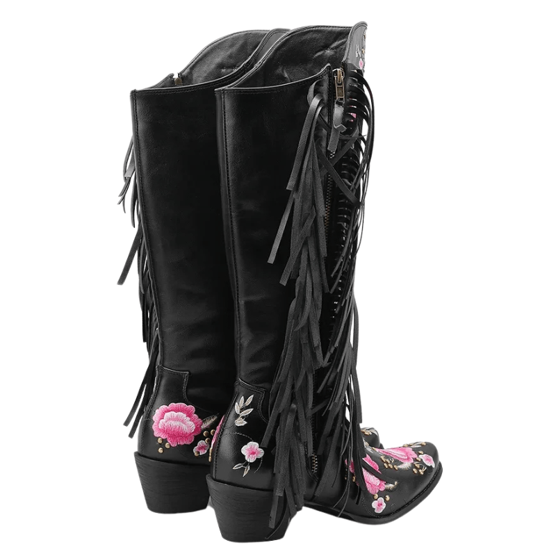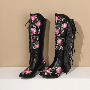 Höga Cowboyboots med Blomsterbroderi och Fransar