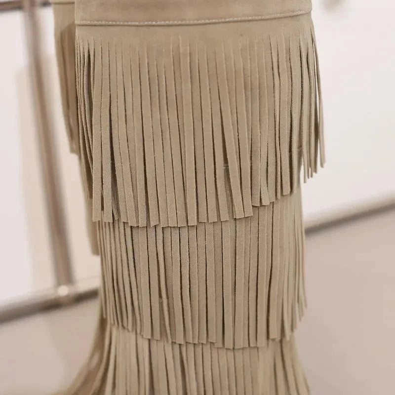 - Bohemisk elegans i varje steg – de svepande fransarna skapar en levande rörelse som fångar blicken.