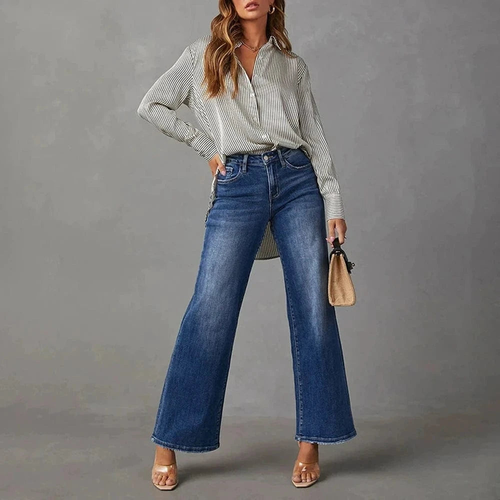 Högmidjade mörkblå vida jeans för dam – tidlös silhuett, modern känsla