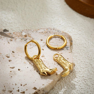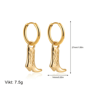 Fånga den fria cowgirl-andan med dessa hoops örhängen med cowboyboots. En trendig accessoar som kombinerar lekfull design med tidlös västernstil – perfekta för att lyfta både vardags- och festlooken.