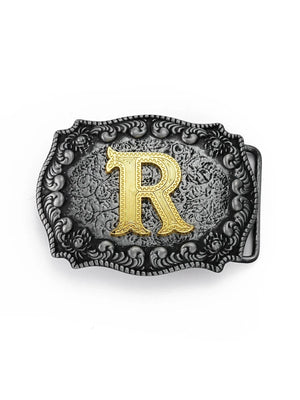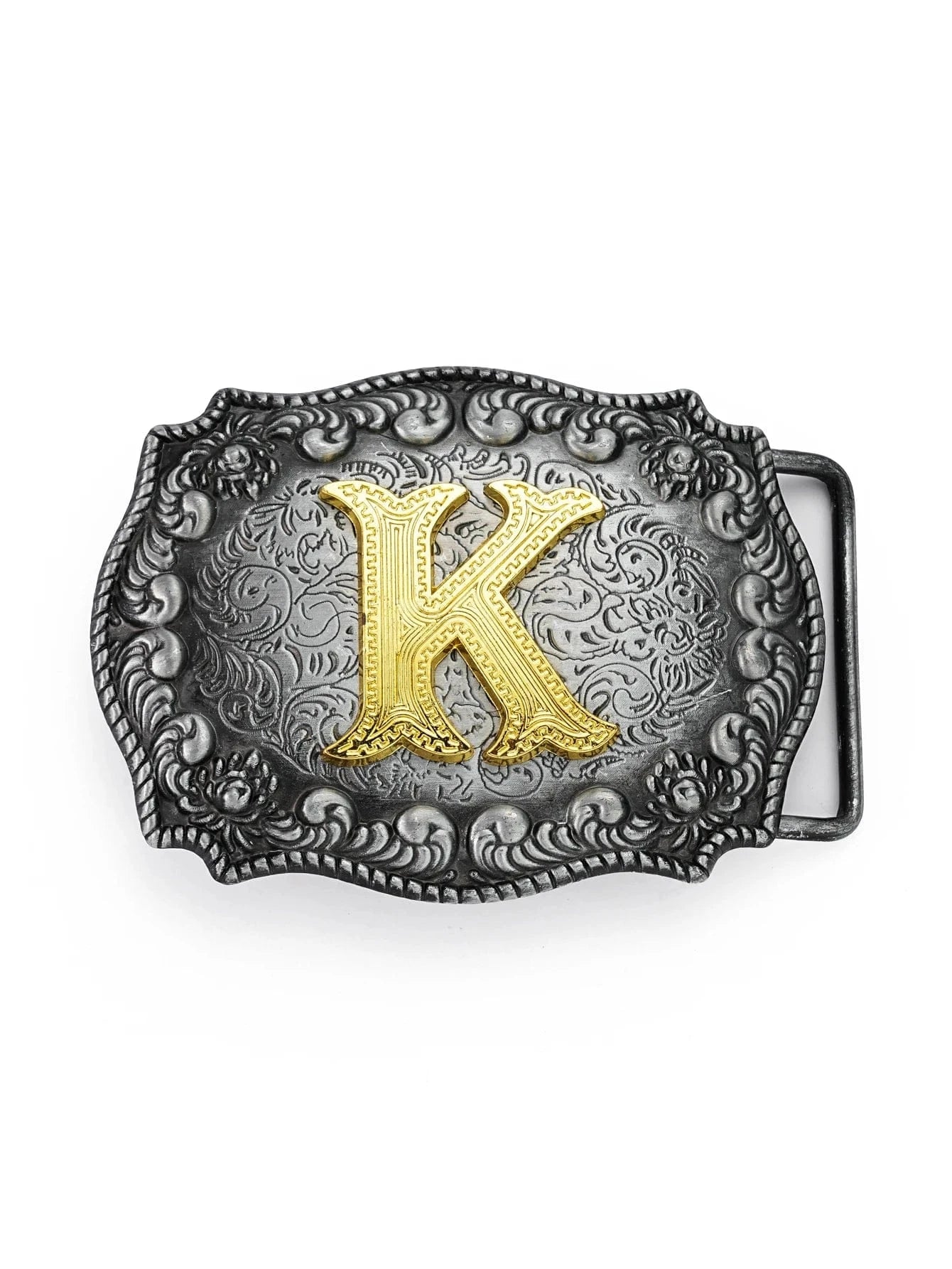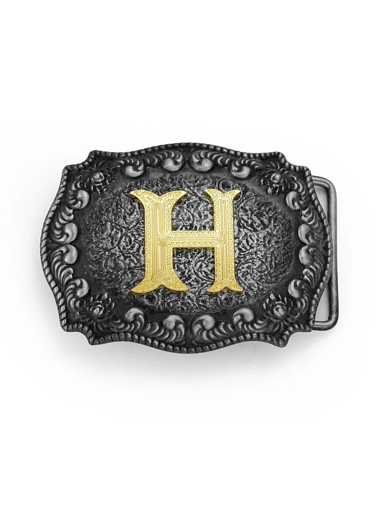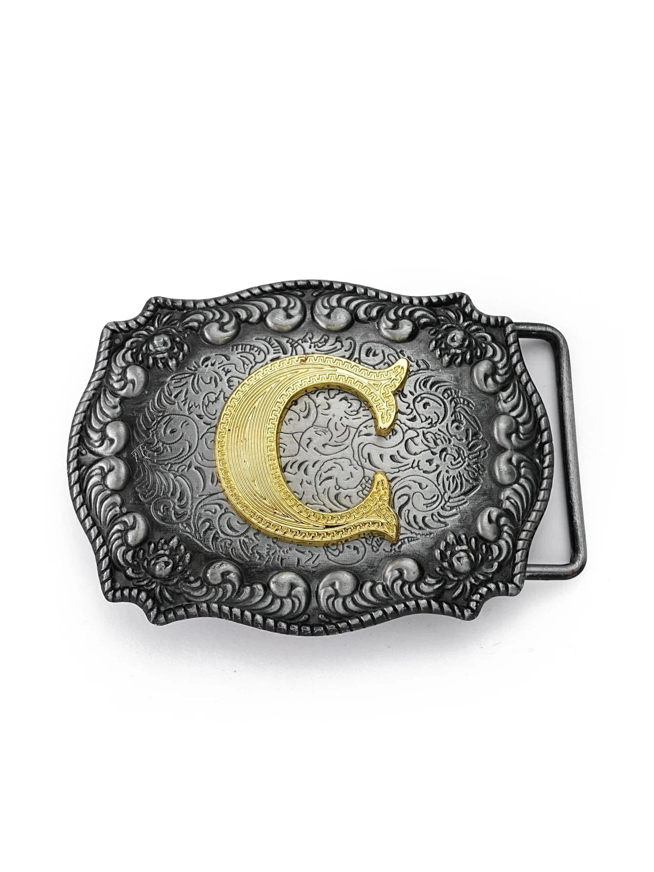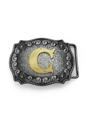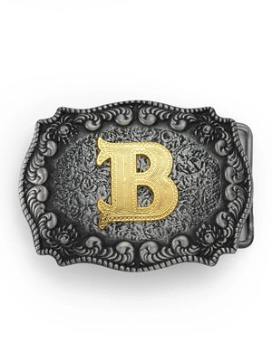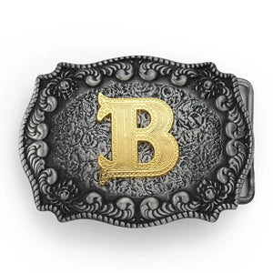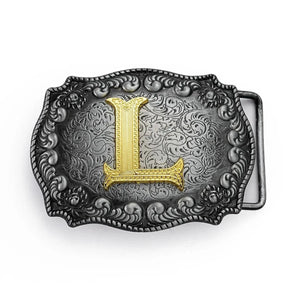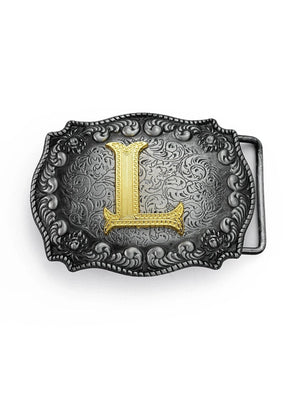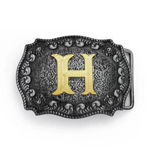 Gör din look unik med ett bältesspänne som bär din initial. Den gyllene bokstaven, vackert inramad av silver och antika detaljer, ger en känsla av både individualitet och klassisk westernanda.