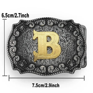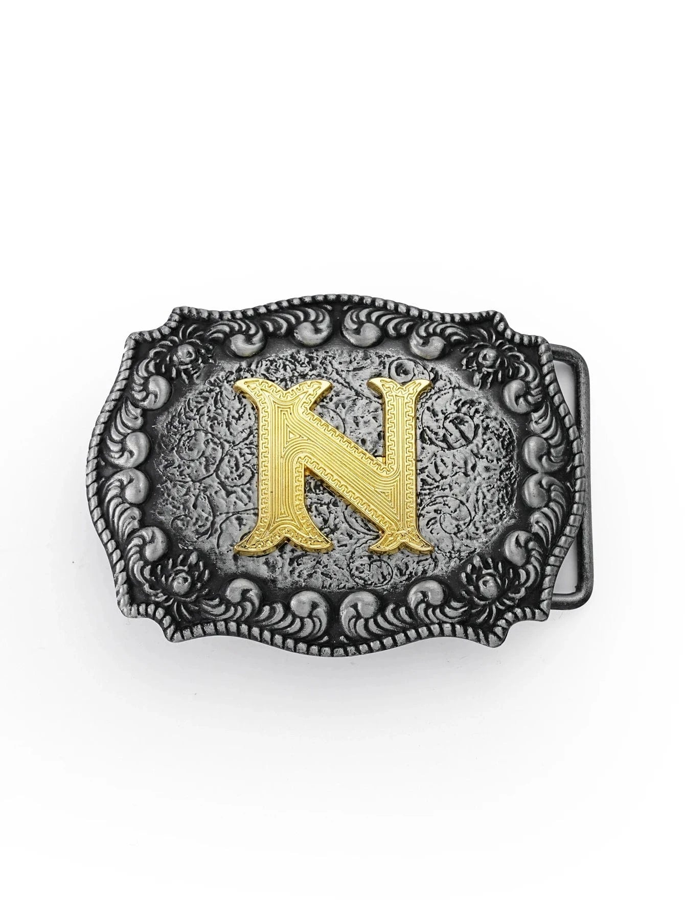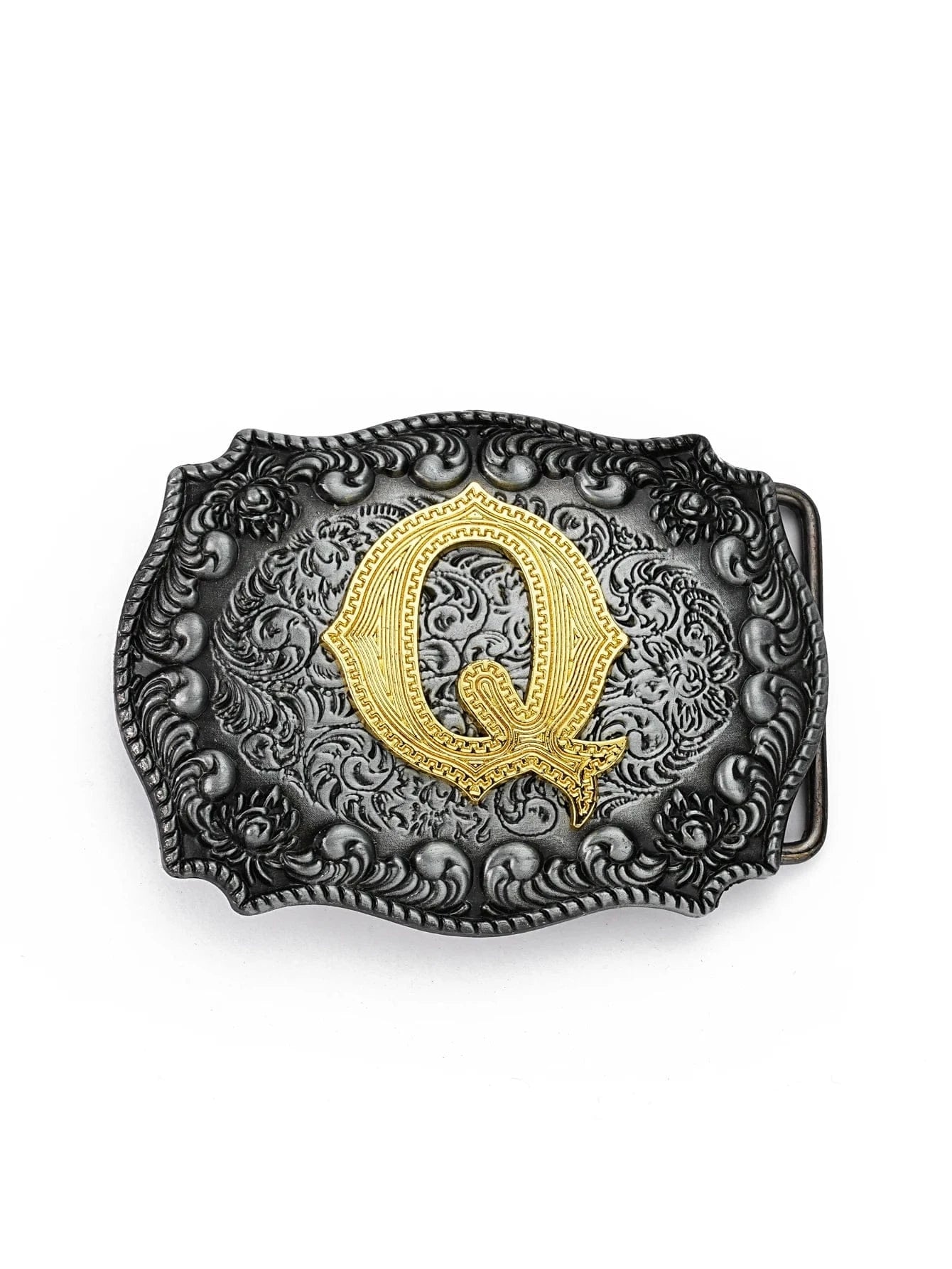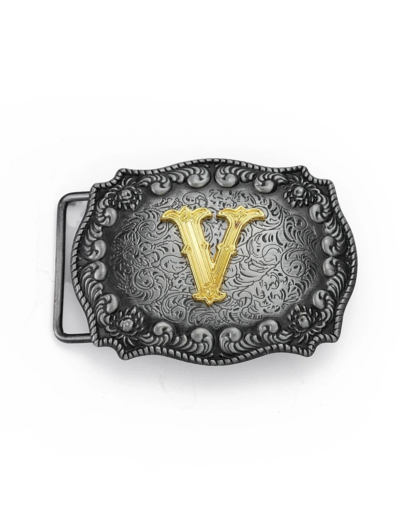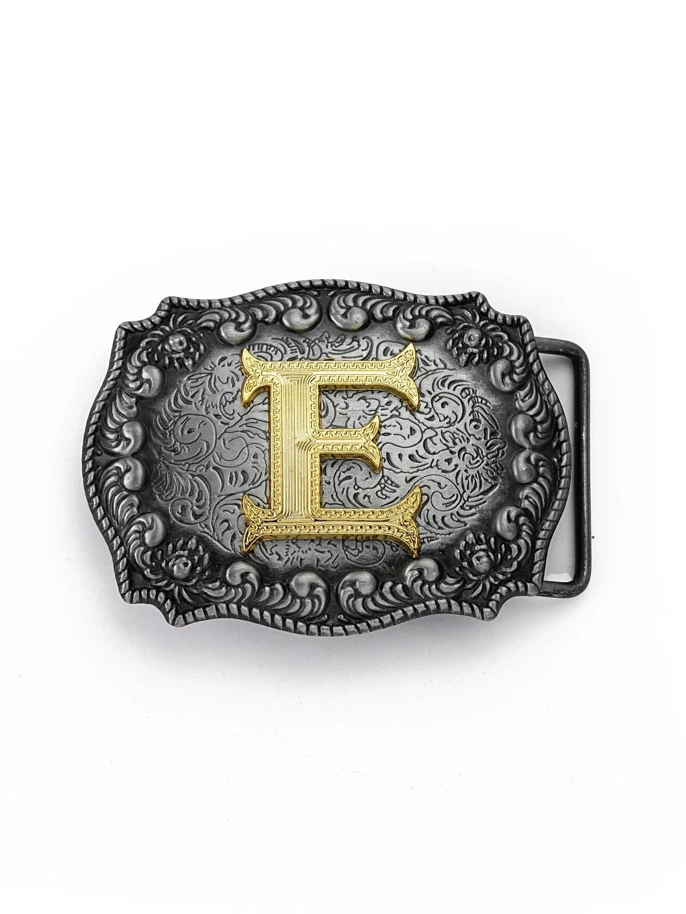 Gör din look unik med ett bältesspänne som bär din initial. Den gyllene bokstaven, vackert inramad av silver och antika detaljer, ger en känsla av både individualitet och klassisk westernanda.