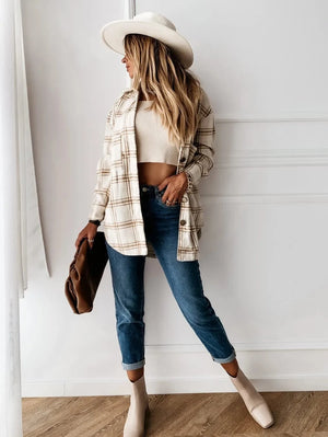 - Stil: Rutig skjorta i jackmodell – kontorschic med avslappnad känsla