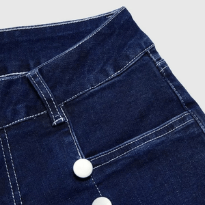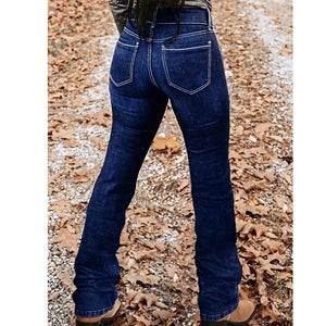 Letar du efter det perfekta paret jeans som kombinerar vilda västern-vibbar med en smickrande silhuett? Dessa högmidjade jeans med dekorativa knappar och bootcut-skärning tar dig från vardag till äventyr med självsäker stil.