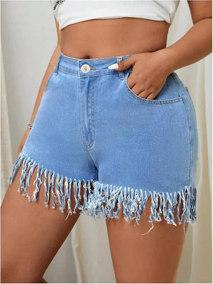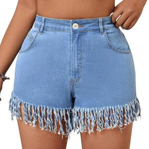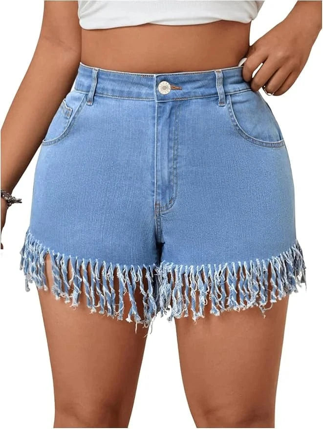 Fyll din garderob med energi och rörelse! Våra jeansshorts med fransar för kurviga är designade för att framhäva din figur med självförtroende – varje steg, varje blick, varje sommardag.