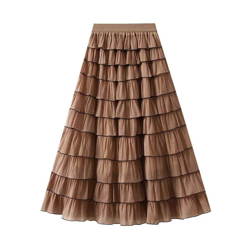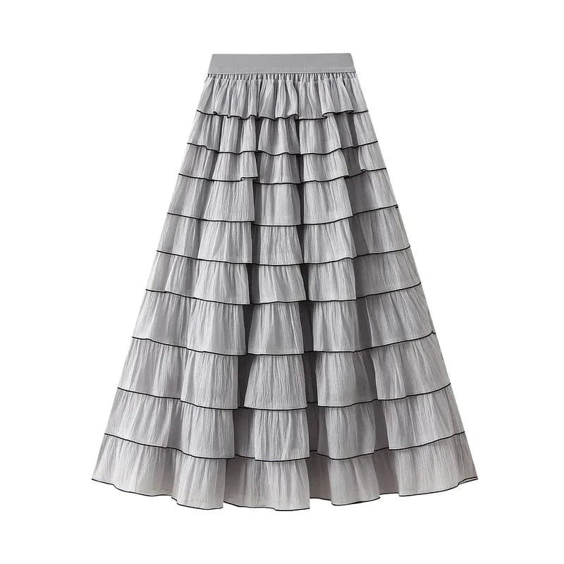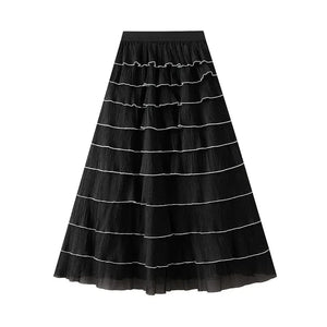 Låt din outfit tala för sig själv med denna böljande våderkjol med kontrasterande svarta kantband. En lekfull men sofistikerad design som följer dina rörelser med lätthet och charm.