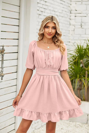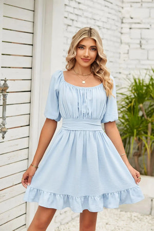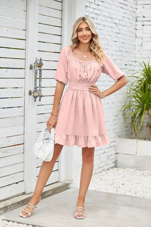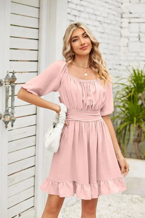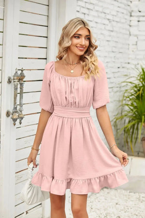- Feminin design: Klassisk kvadratisk ringning och korta ärmar för en tidlös look.