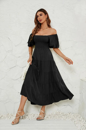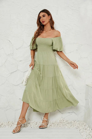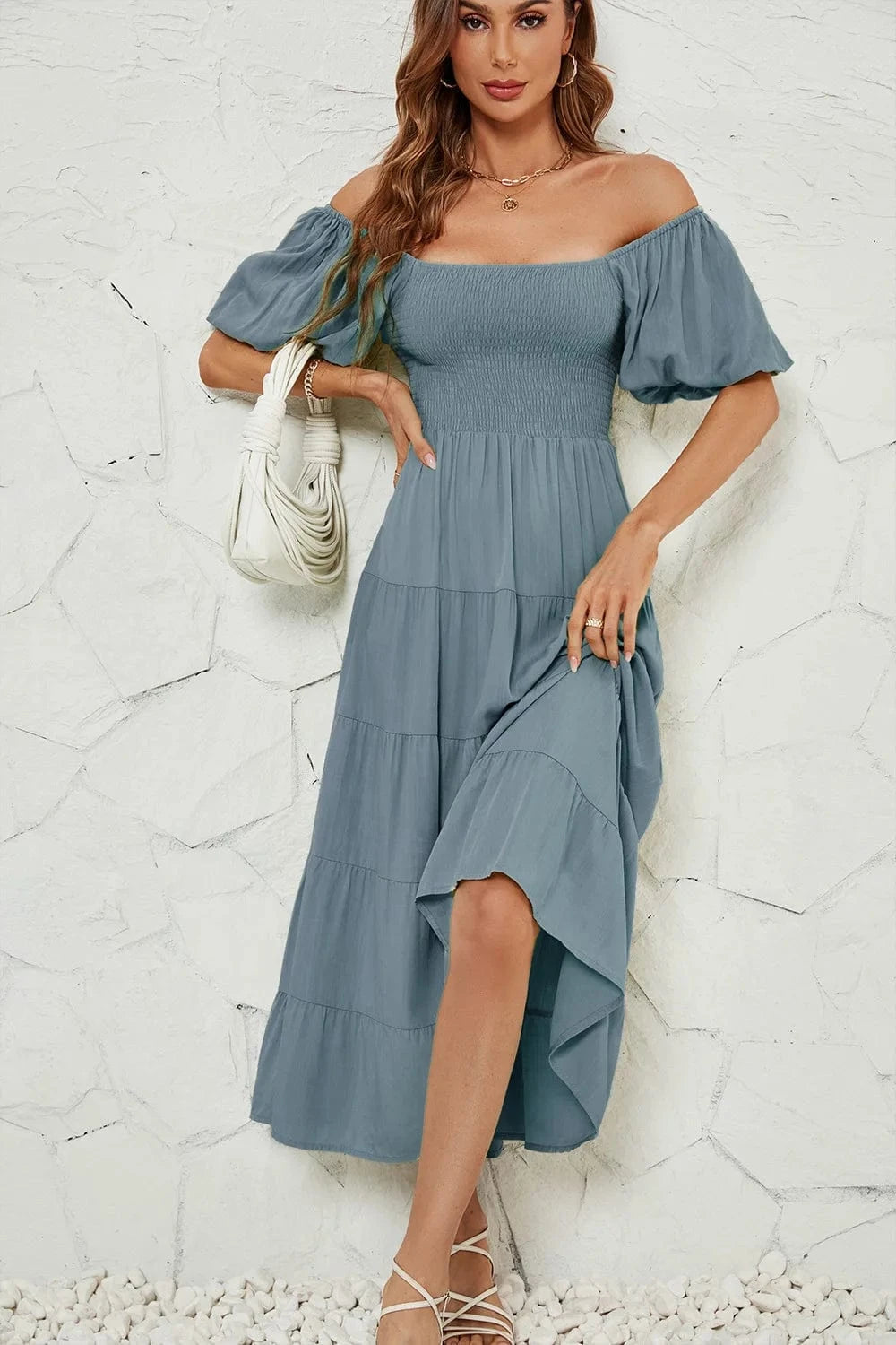 - Tidlös design – A-linjeformad med off-shoulder och puffärmar som aldrig går ur mode.