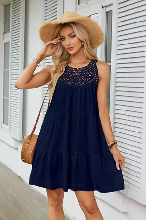 - Perfekt för sommaren – ärmlös design och knälång längd håller dig sval och bekväm.