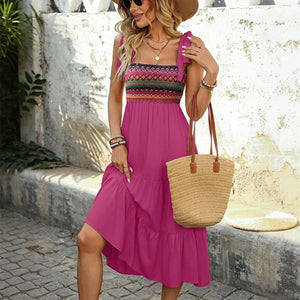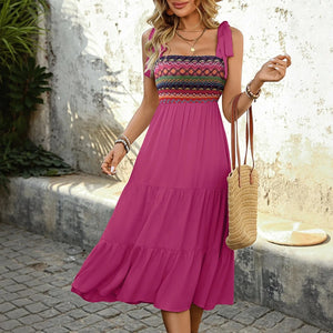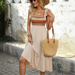 Upptäck en klänning som fångar känslan av frihet och äventyr. Perfekt för strandpromenader, sommarfester eller en avslappnad dag i stan – allt med en touch av westernstil.