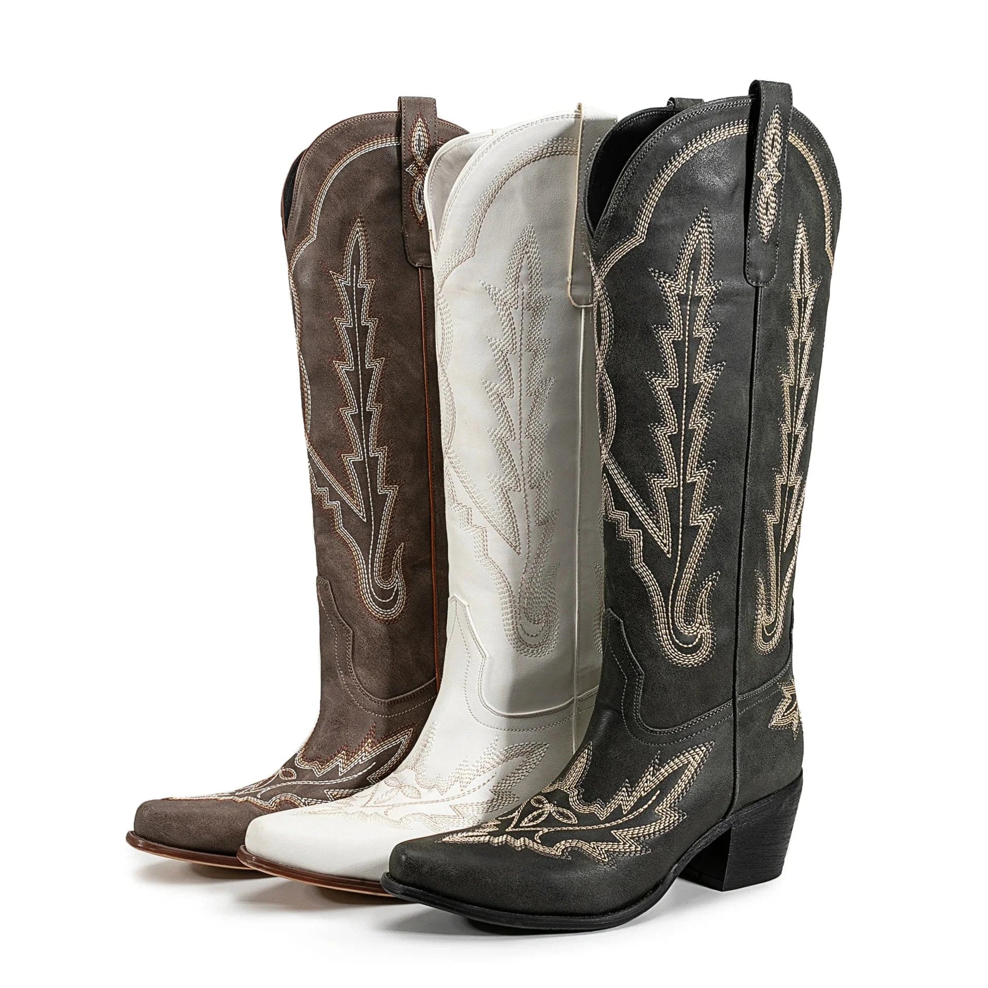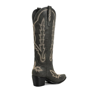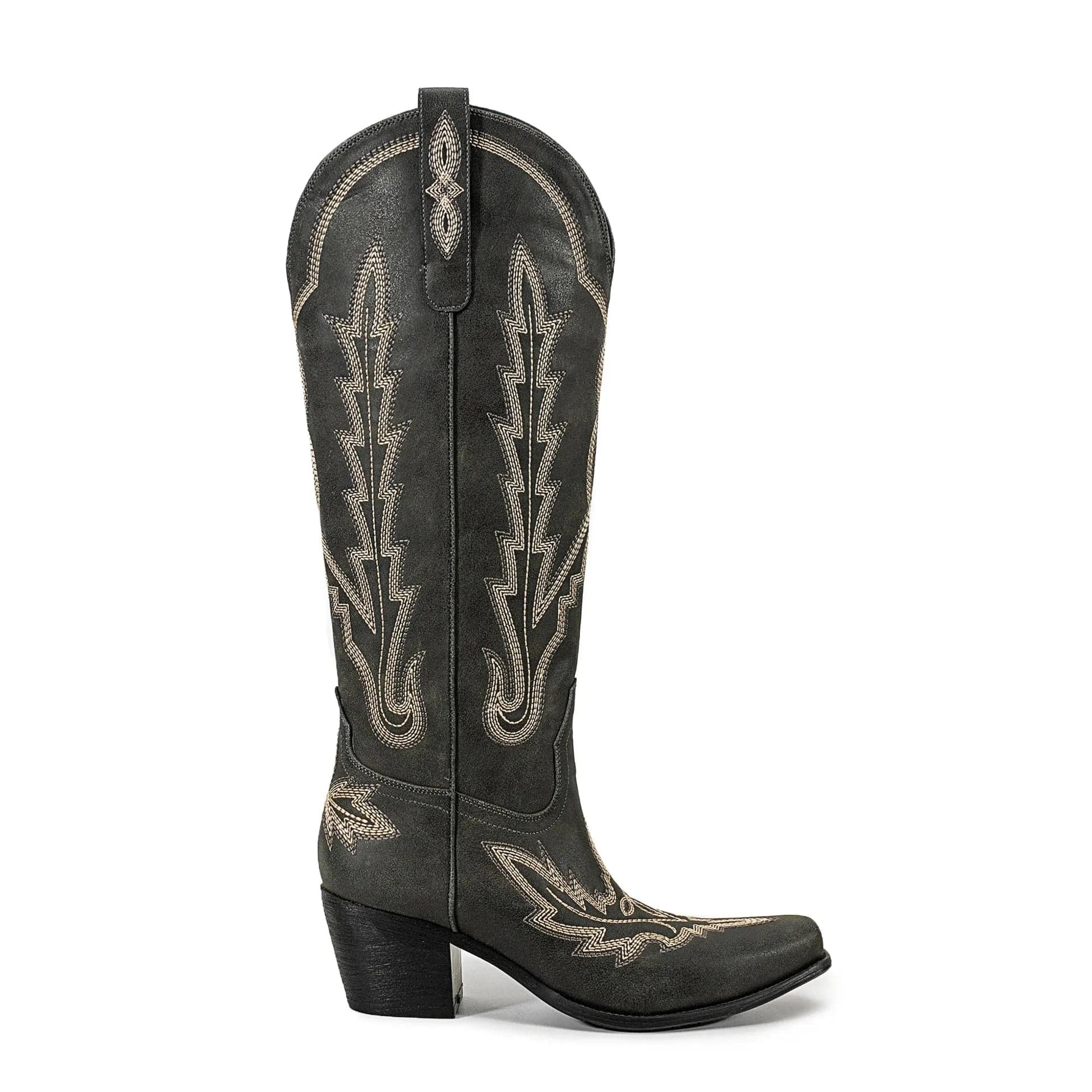 Ge dina outfits en kraftfull twist med våra klassiska cowboyboots i svart mocka – bootsen som kombinerar tidlös westernstil med modern elegans. Perfekta för både citypromenader och festivalhelger, de ger dig attityd utan att kompromissa med komforten. Med sin smidiga passform och distinkta silhuett kommer de snabbt bli dina favoriter i garderoben.