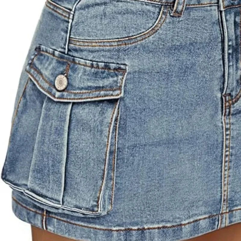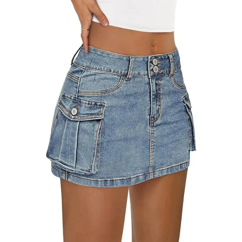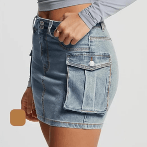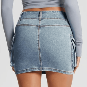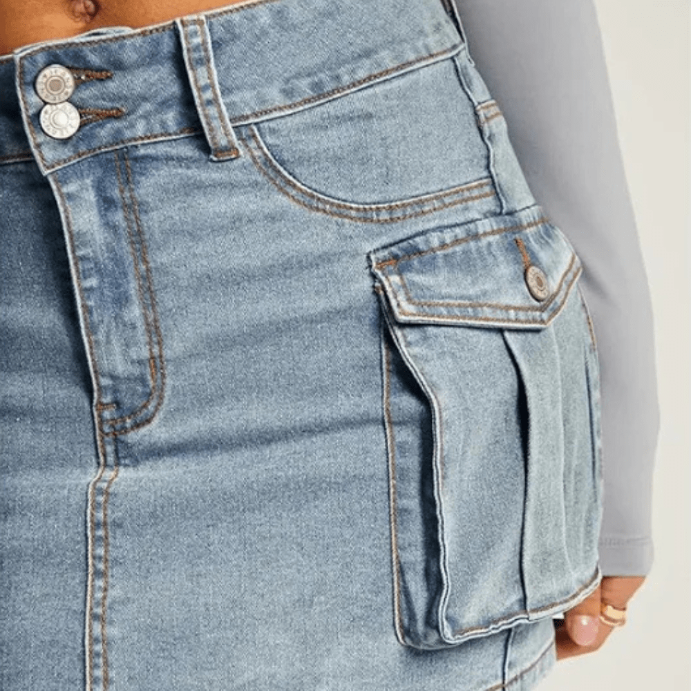 Upptäck kraften i en klassiker med edge. Vår korta cargokjol i jeans är en perfekt mix av feminin passform och streetinspirerad funktion – redo att ta dig från vardag till fest med en självklar attityd.