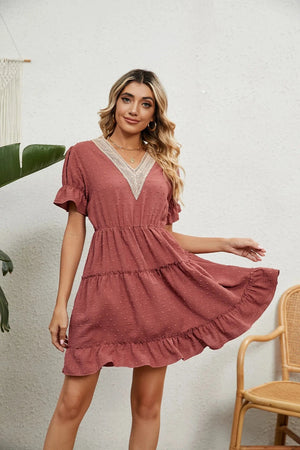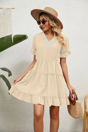 Fånga sommarens frihet och stil med denna korta klänning som är lika bekväm som den är elegant. Perfekt för strandpromenader, picknickar eller en dag på stan.