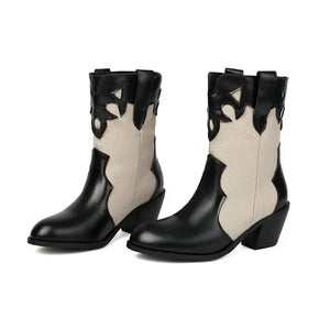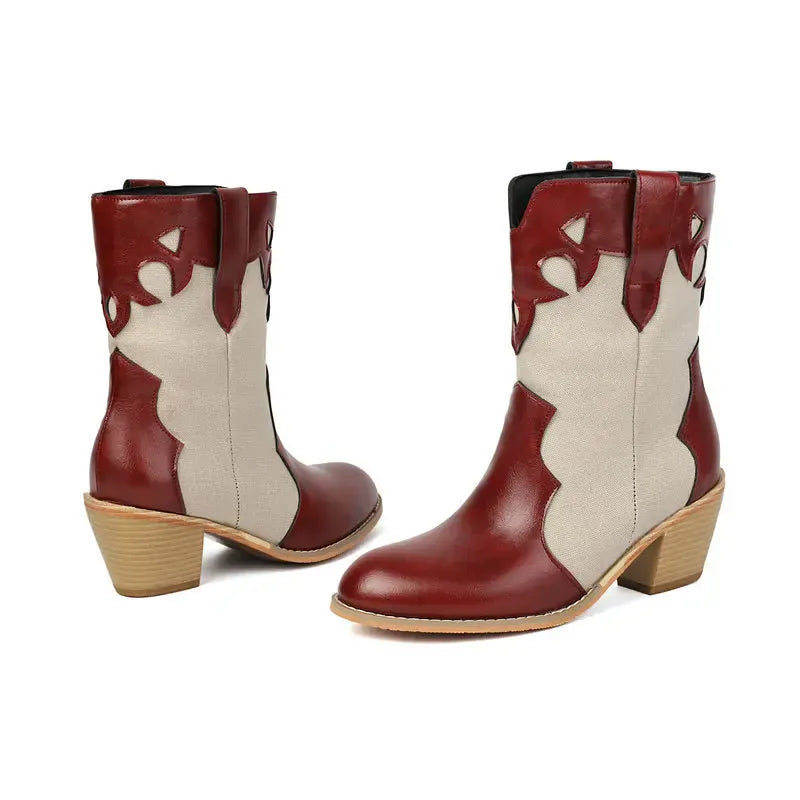 Låga Cowboyboots i västernstil med utskuret mönster och blockklack