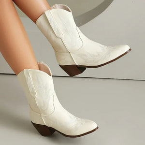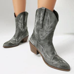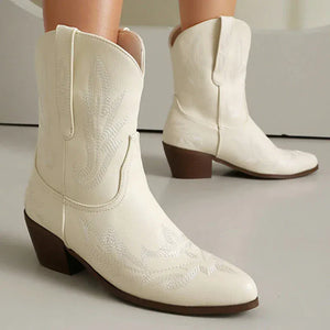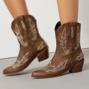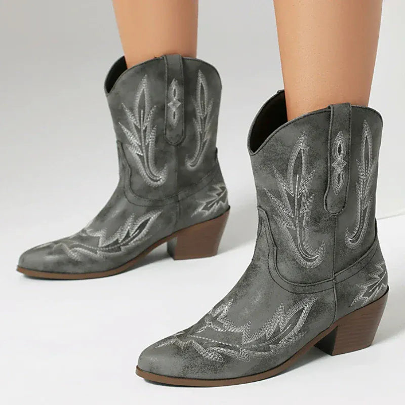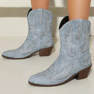 Låga cowboyboots med broderad design och mjuk mockalook – bootsen du aldrig vill ta av dig