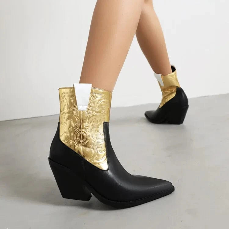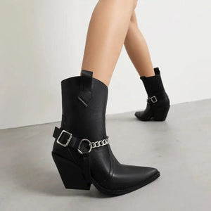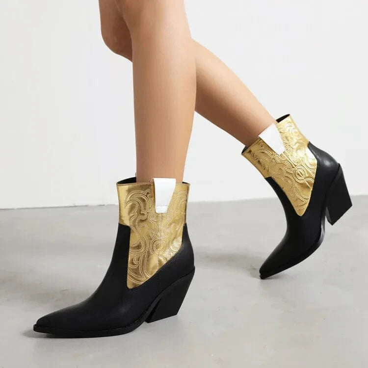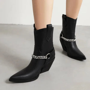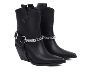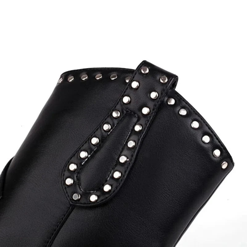Letar du efter boots som kombinerar western-attityd med modern edge? Då är dessa låga cowboyboots med nitar precis vad du behöver. Skarpa linjer, hög komfort och glänsande metallnitar gör varje steg både självsäkert och stilfullt – perfekta för dig som älskar att ta plats.