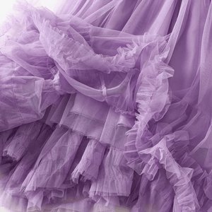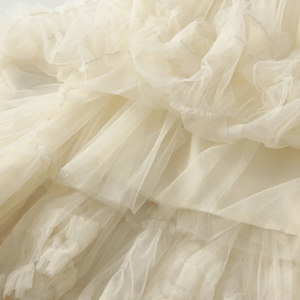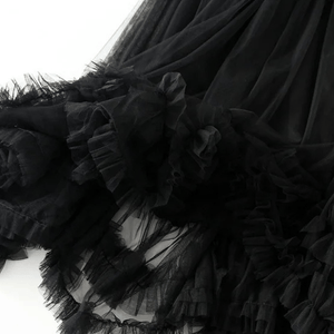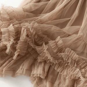Lyft varje steg med en kjol som dansar runt dig i mjuka vågor av tyll. Den här vackra A-linjeformade modellen med elegant volangkant skapar en tidlös och drömsk känsla – perfekt för både vardag och speciella tillfällen.