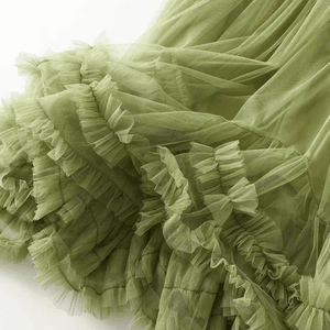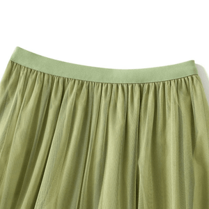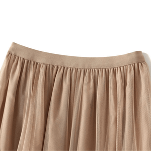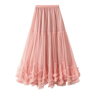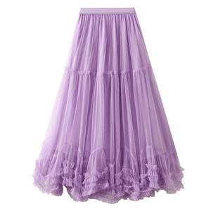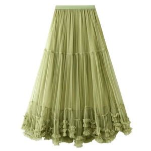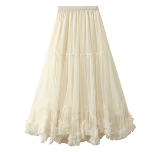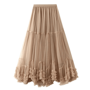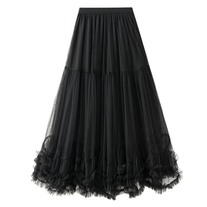 Lång A-linjeformad tyllkjol med en finstämd volang nedtill