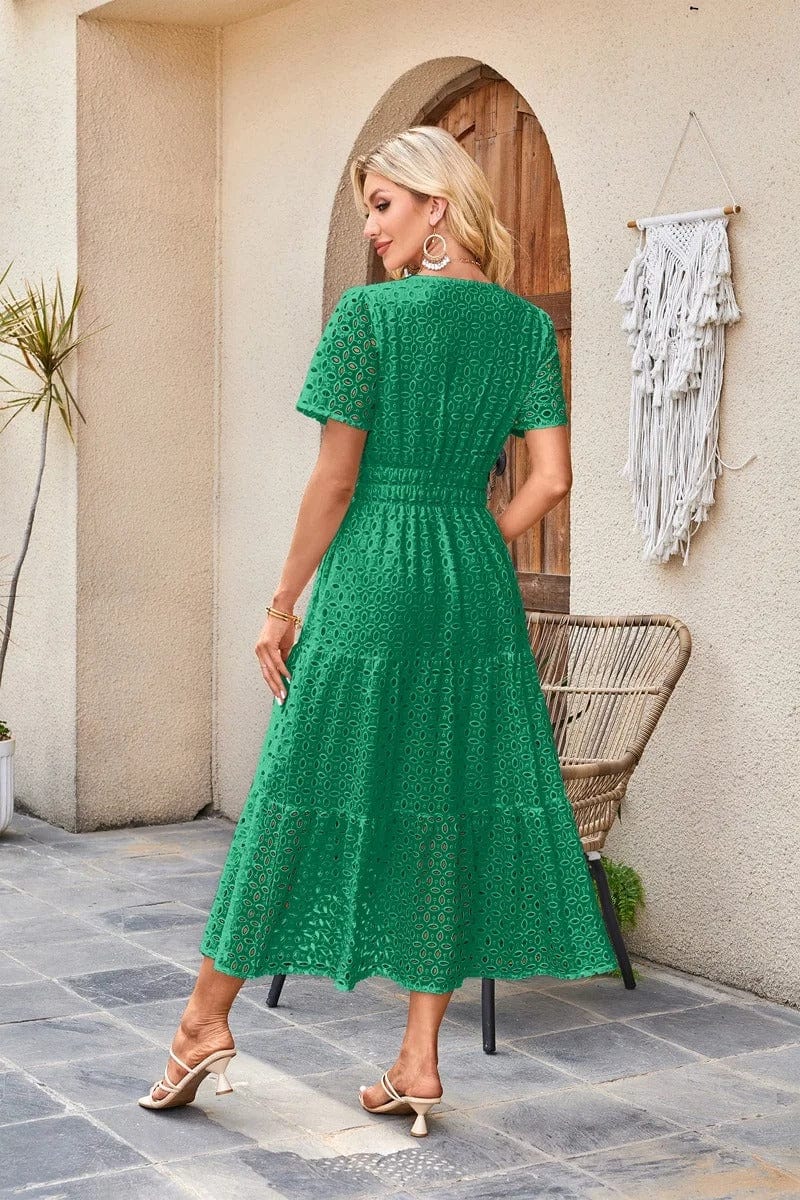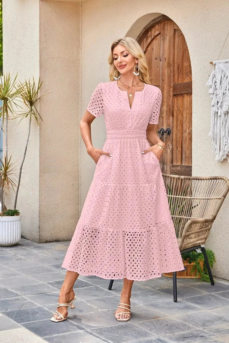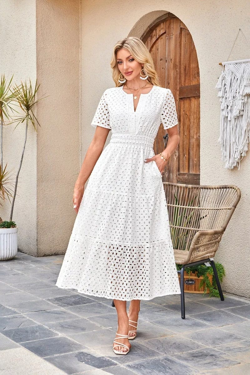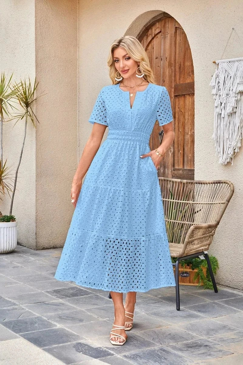 Drömmer du om en klänning som kombinerar elegans och bekvämlighet? Vår långa bohemiska klänning med spets och broderi är perfekt för varma sommardagar, strandfester eller avslappnade kvällar i goda vänners lag.