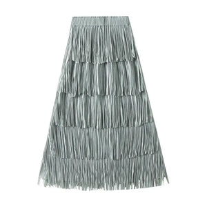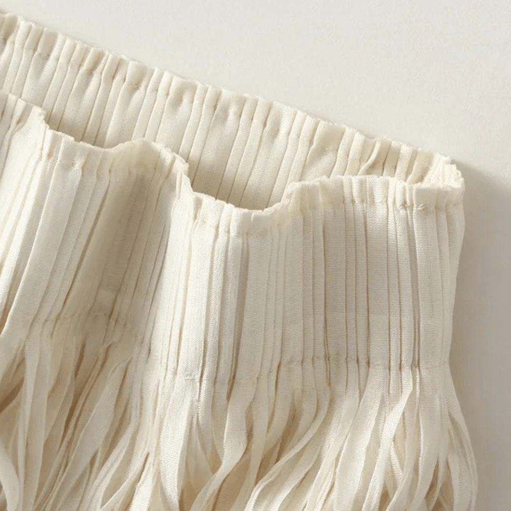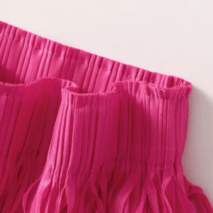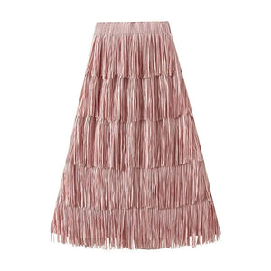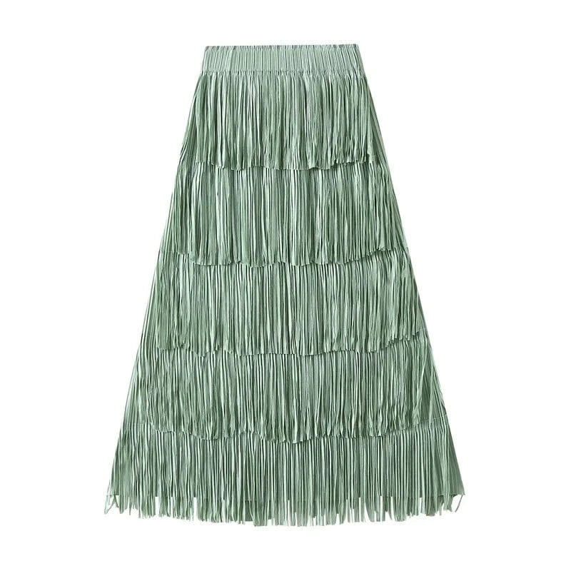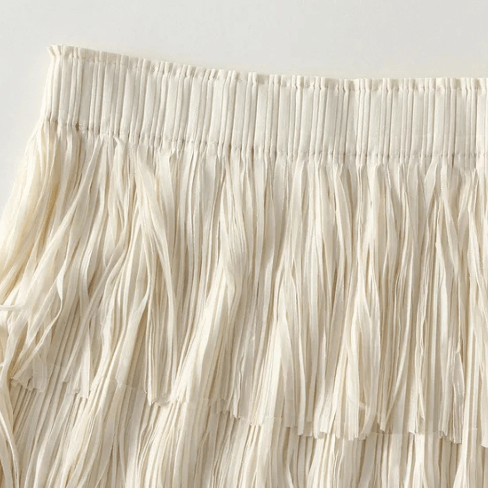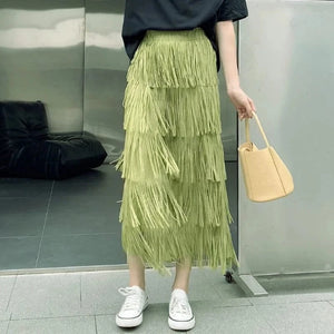 Ge din stil en lekfull och samtidigt elegant twist med vår långa festkjol med fransvolanger. Varje steg blir en dans när fransarna följer dina rörelser och ger liv åt din outfit – perfekt för både sommarkvällar och festliga tillfällen.