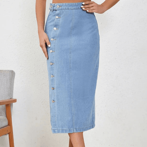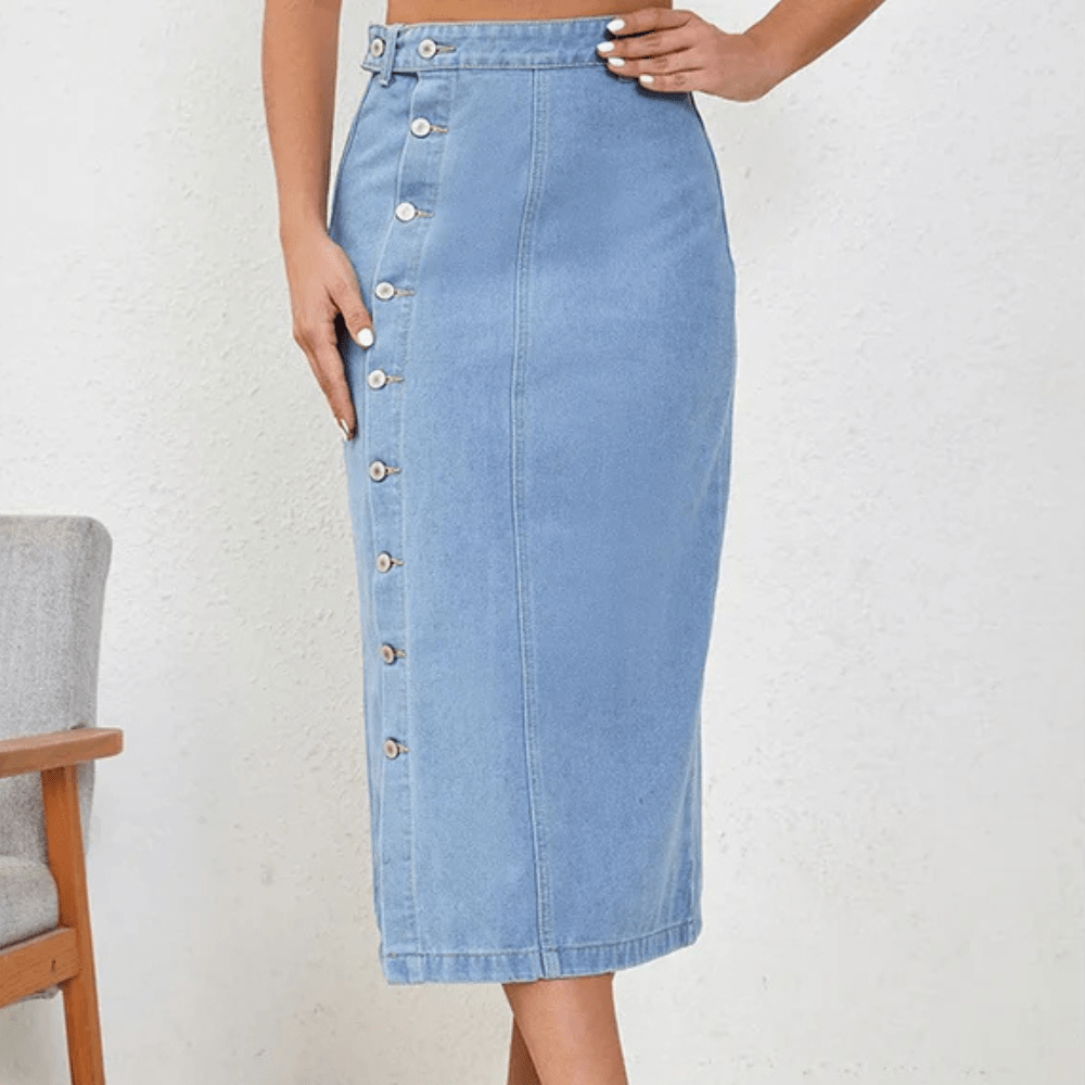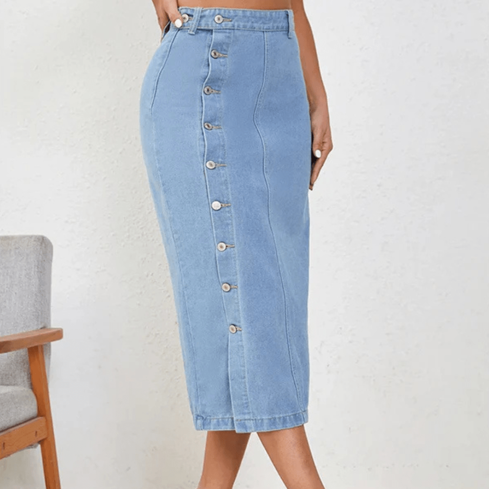 Lång jeanskjol med knappar och slits – sensuell elegans för varma dagar