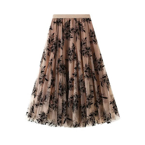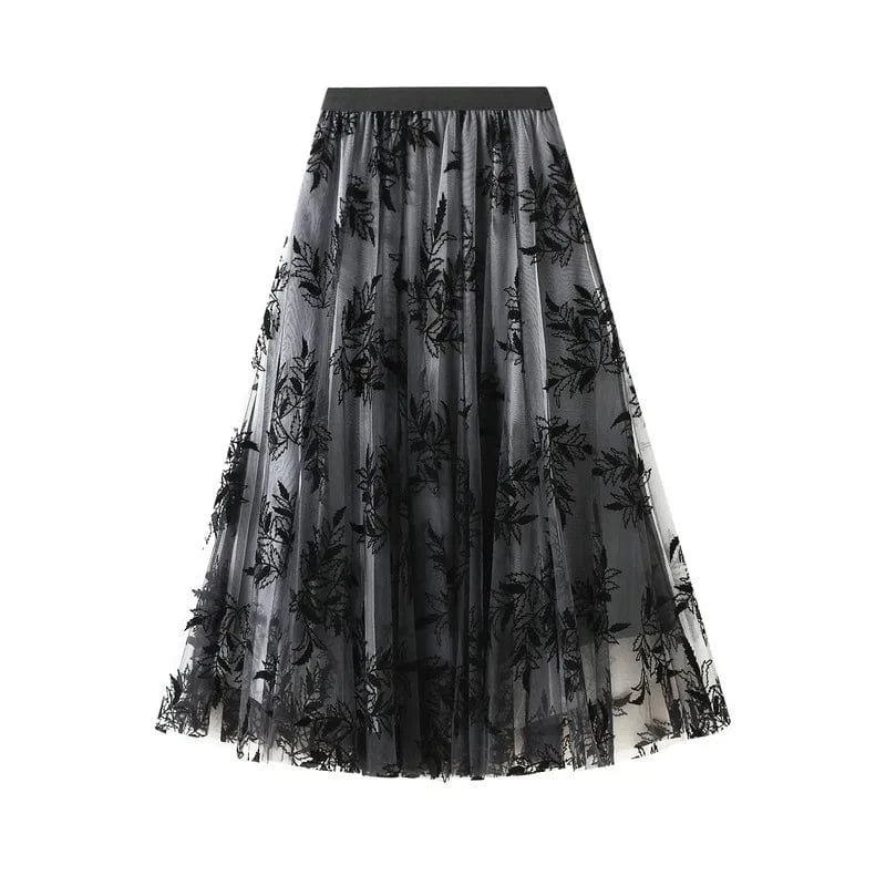 Lång plisserad tyllkjol med flockat blommönster – din nyckel till romantisk elegans