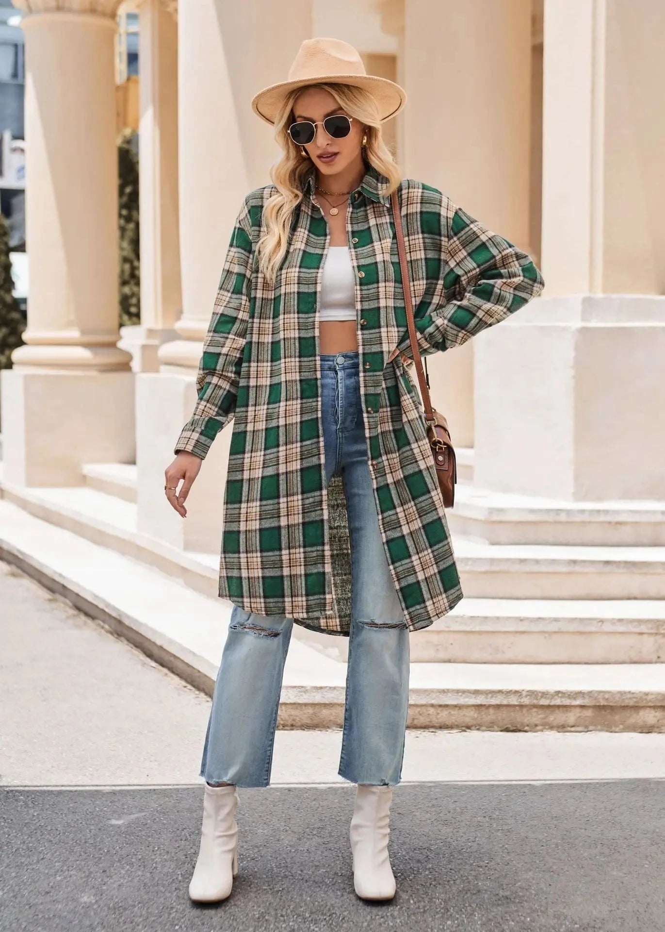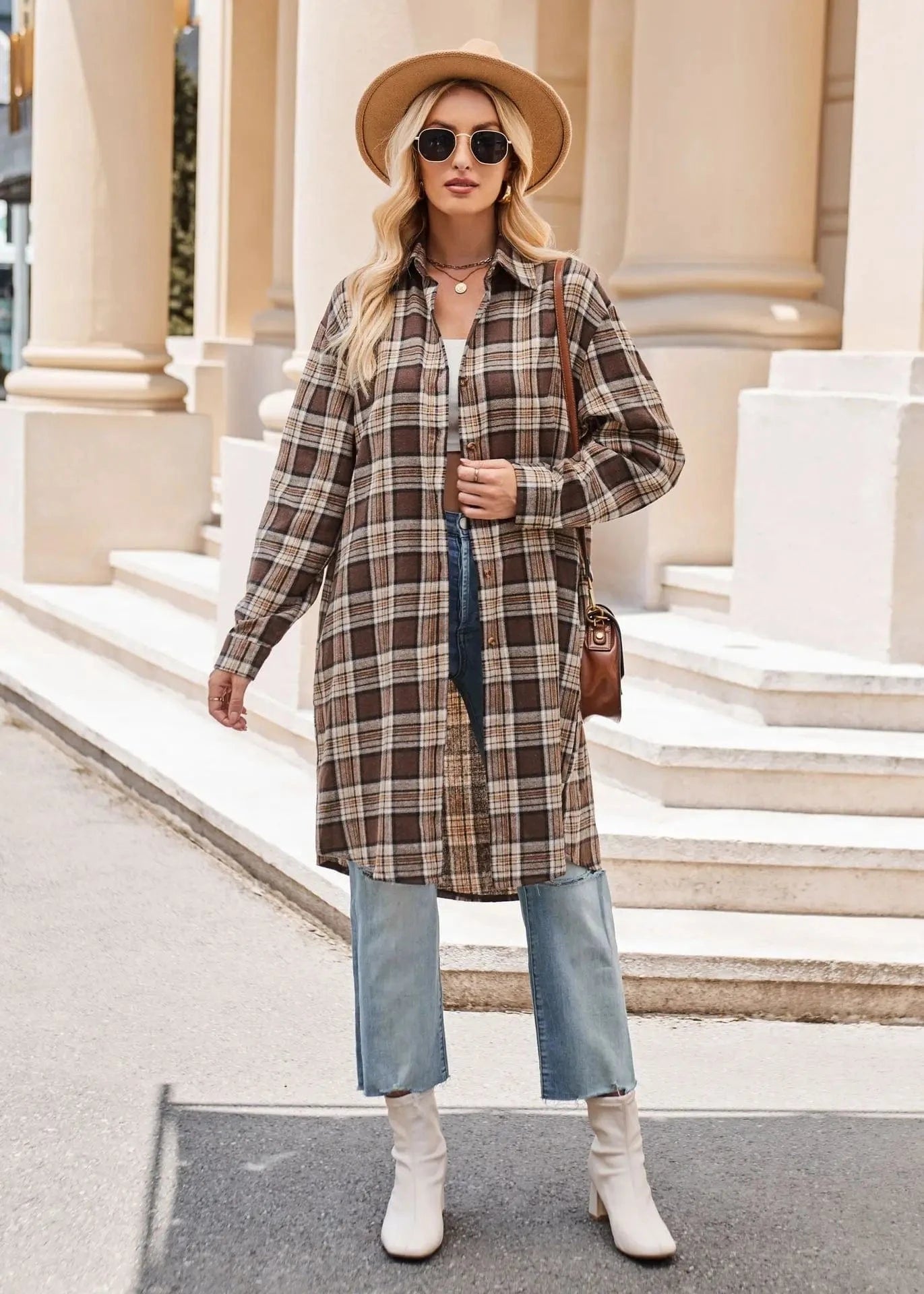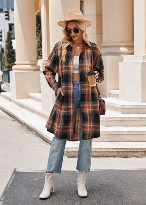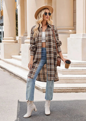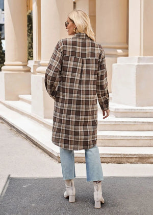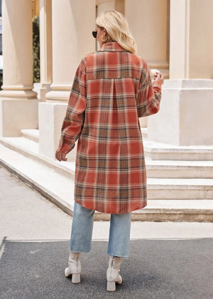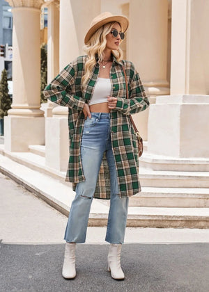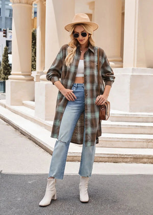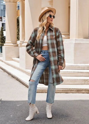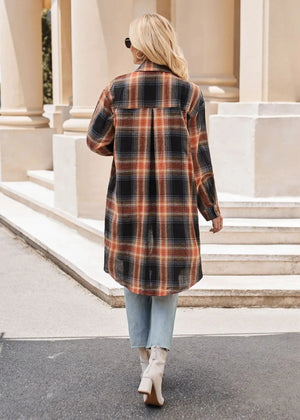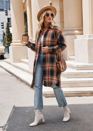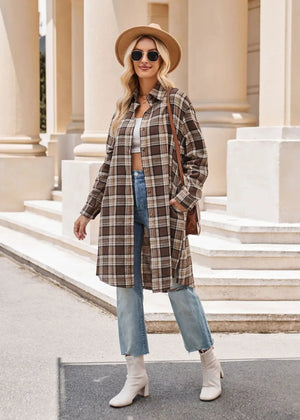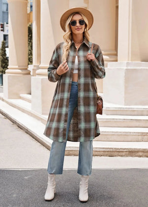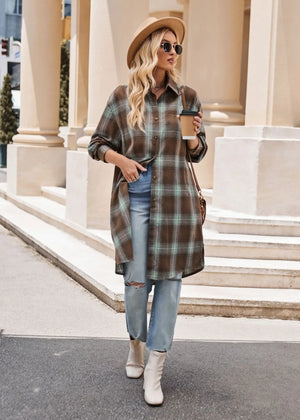 Lång rutig flanellskjorta för dam – perfekt lager på lager i höst