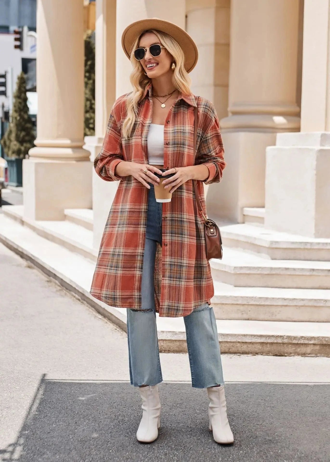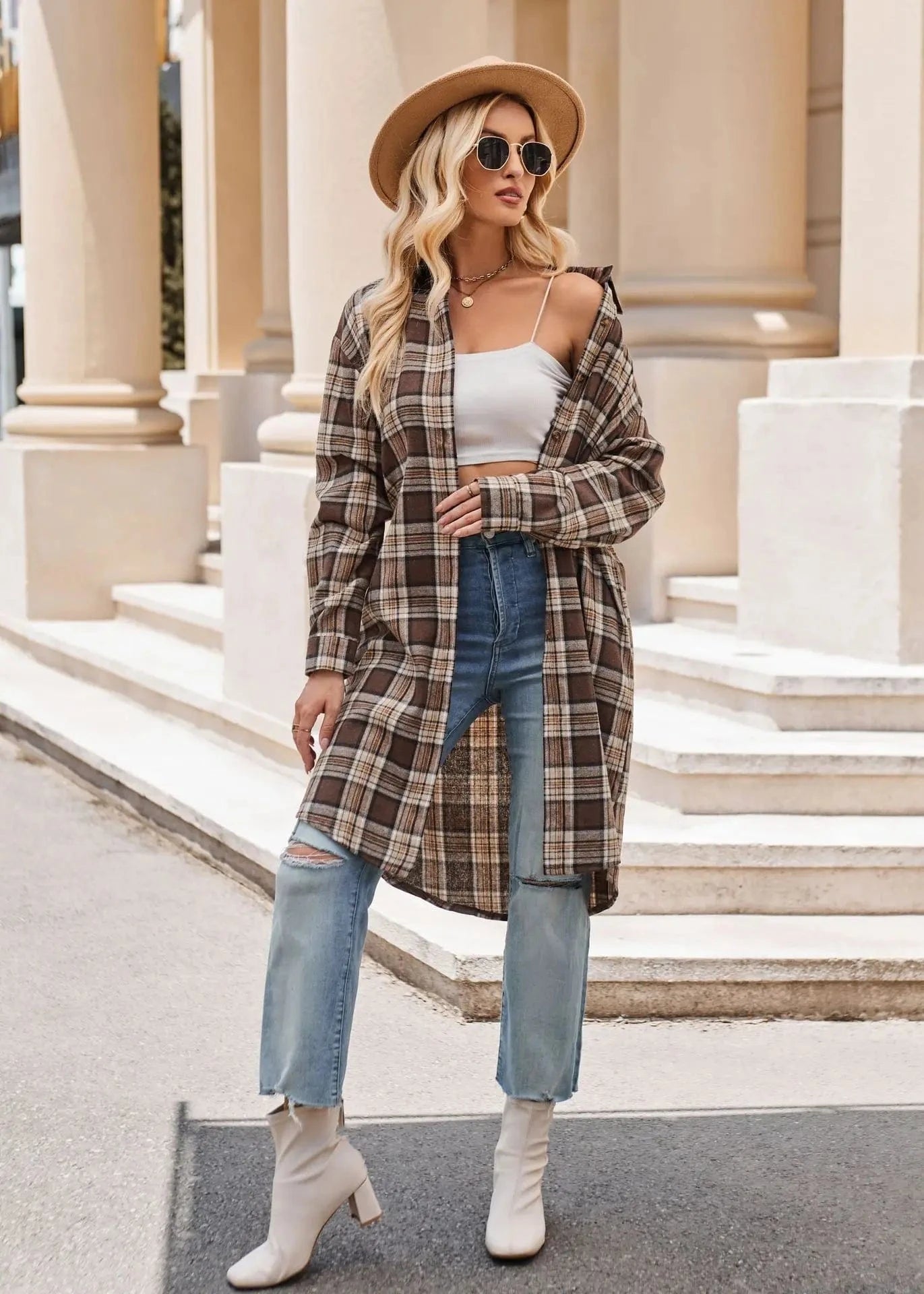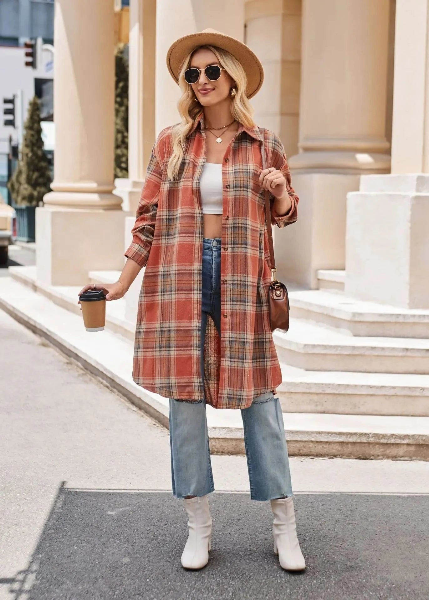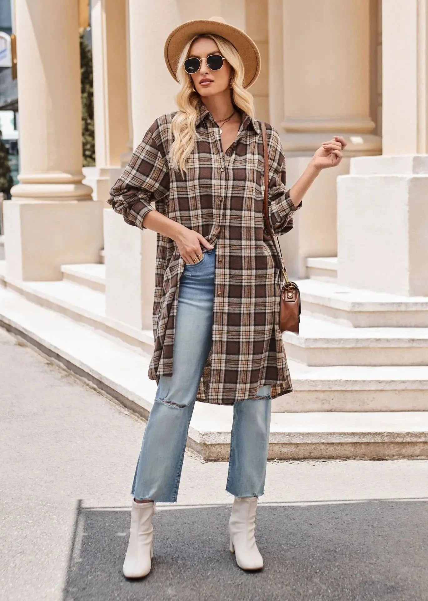 Lång rutig flanellskjorta för dam – perfekt lager på lager i höst