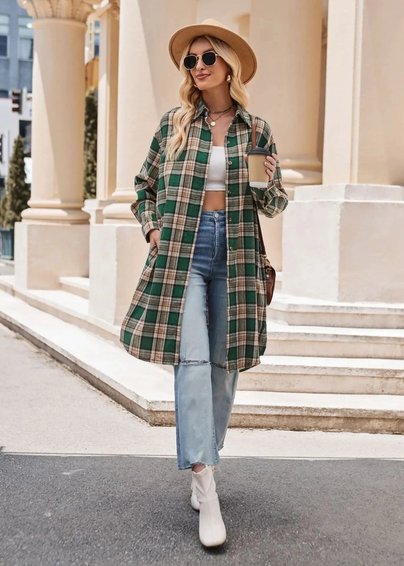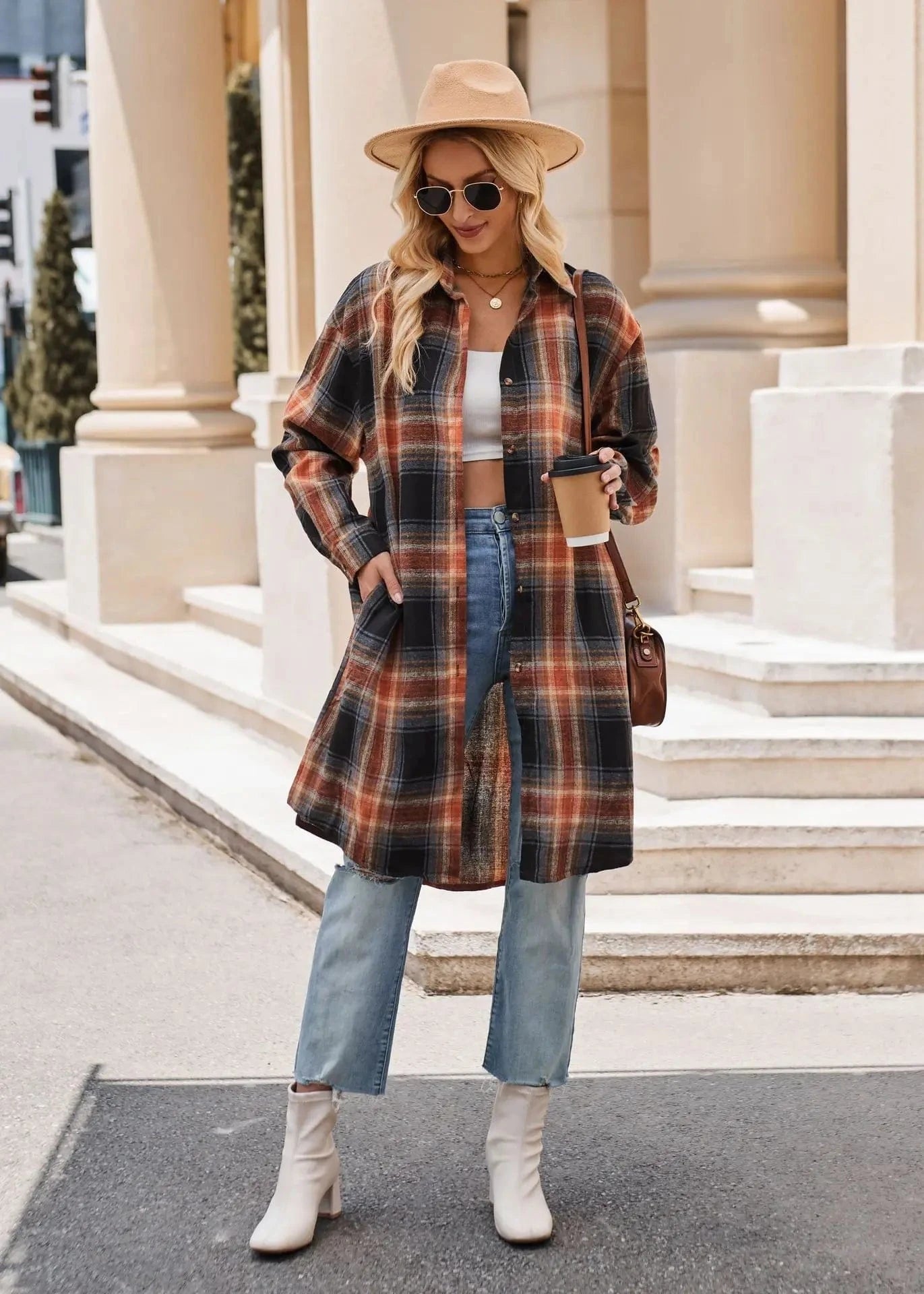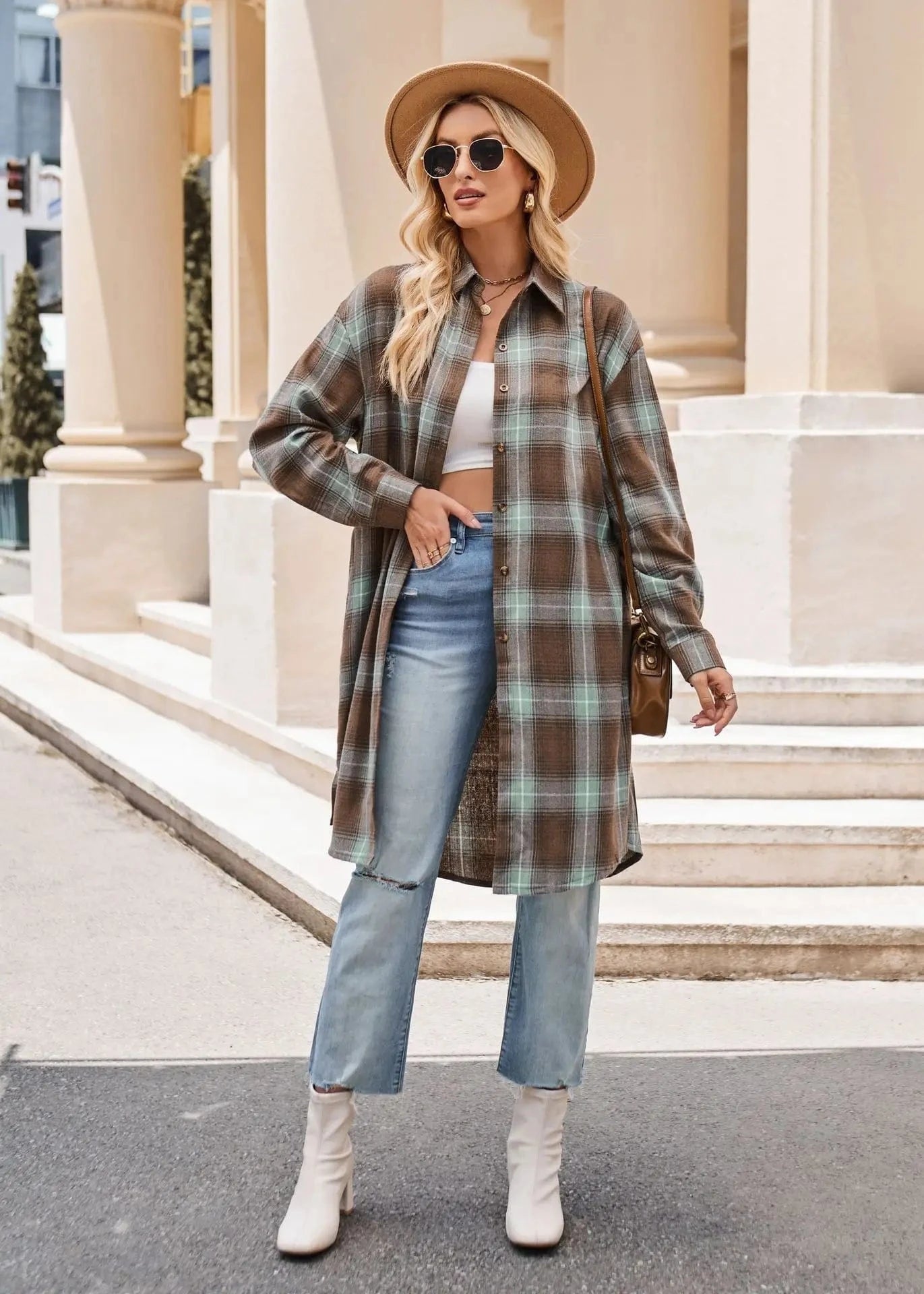 Låt din höststil blomma med denna långa flanellskjorta i klassiskt rutigt mönster. Skapad för att ge både värme och stil under kyliga dagar, är den här skjortan ett måste i varje garderob.