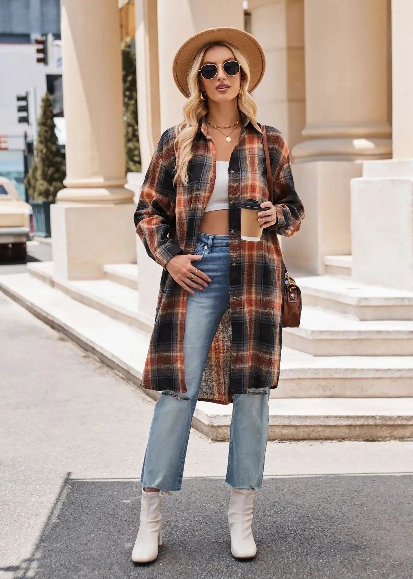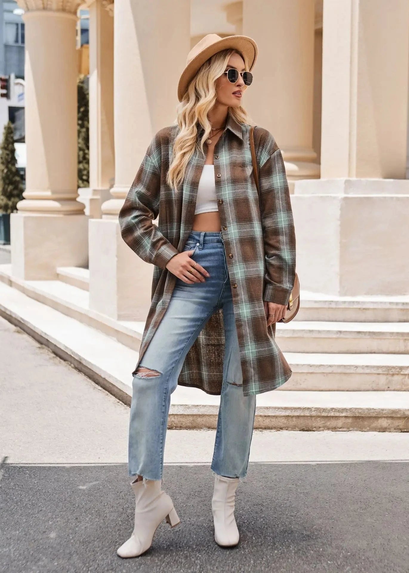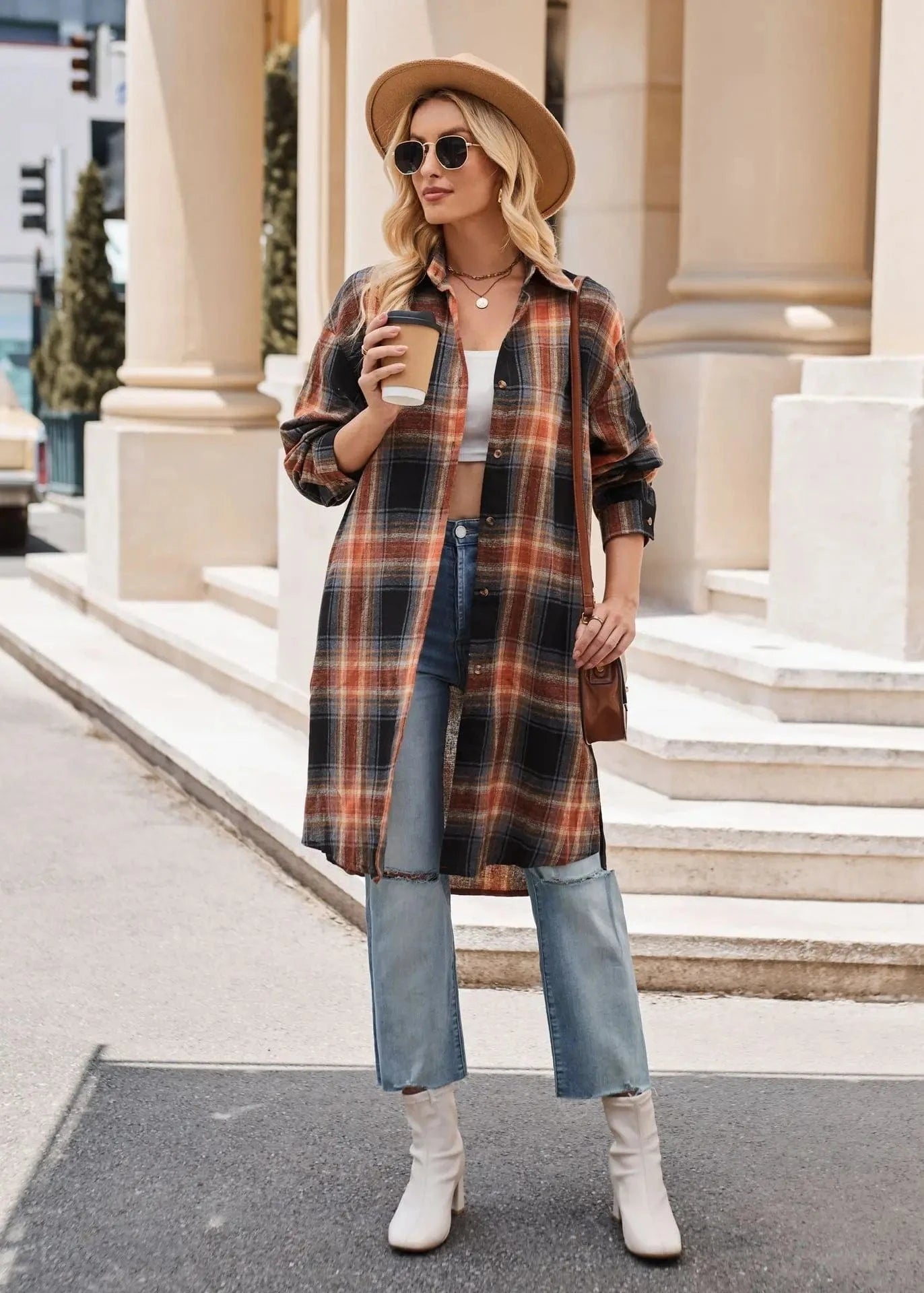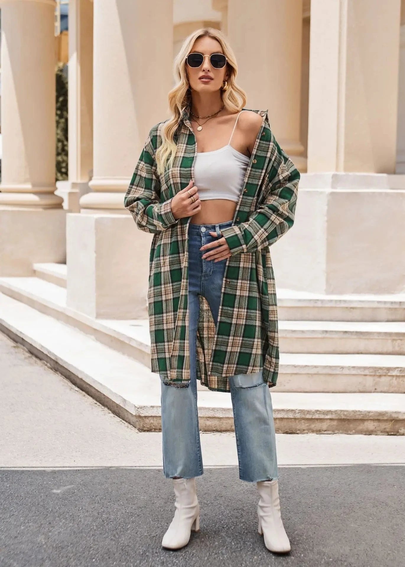 Låt din höststil blomma med denna långa flanellskjorta i klassiskt rutigt mönster. Skapad för att ge både värme och stil under kyliga dagar, är den här skjortan ett måste i varje garderob.