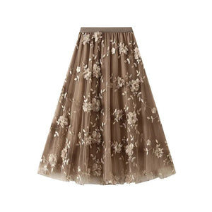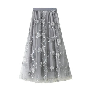 Lång tyllkjol med 3D-blombroderi: lyft din look med romantisk elegans
