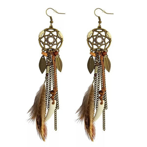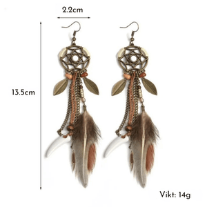 Långa drömfångare-örhängen med fjädrar