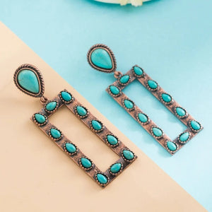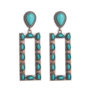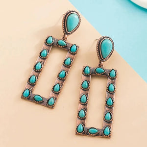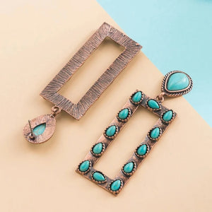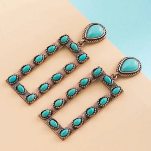 Långa rektangulära boho-örhängen i koppar med turkos: din showstopper för varje country-kväll