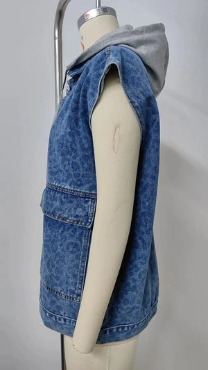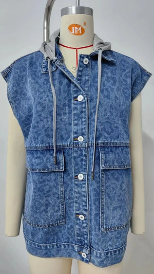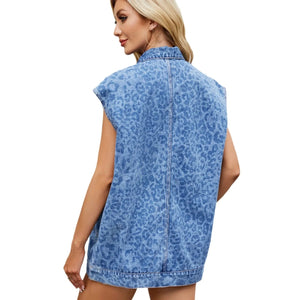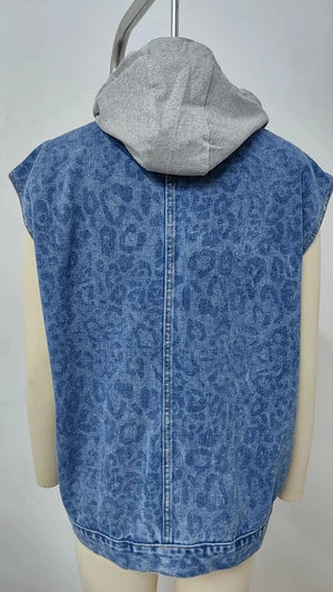 Upptäck en väst som kombinerar den tidlösa känslan av denim med det djärva uttrycket av leopardmönster. Perfekt för dig som vill addera personlighet och en lekfull twist till vardagsstilen.